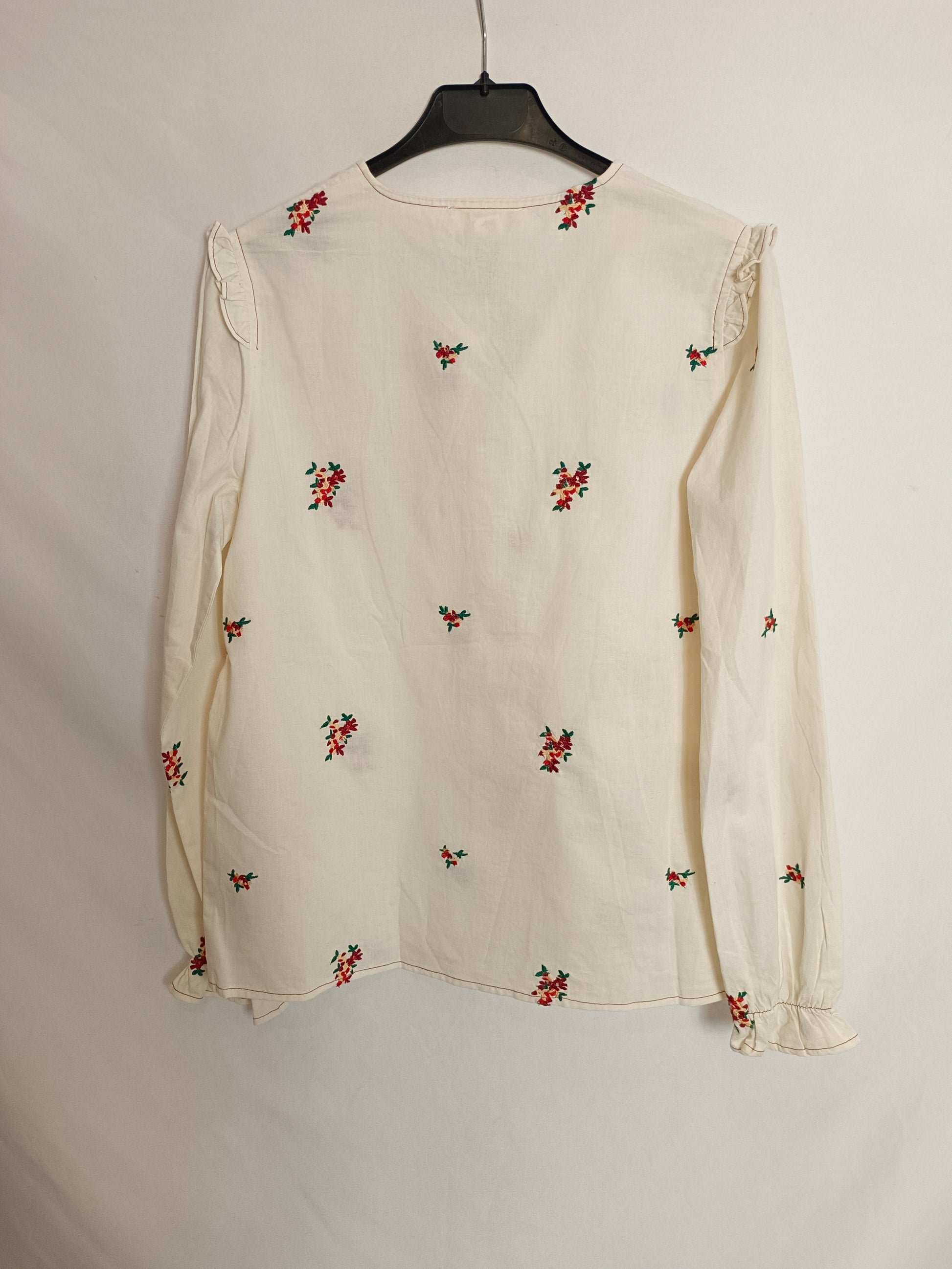 NEW WITH TAG. Beige baby-collar blouse with embroidered flowers.