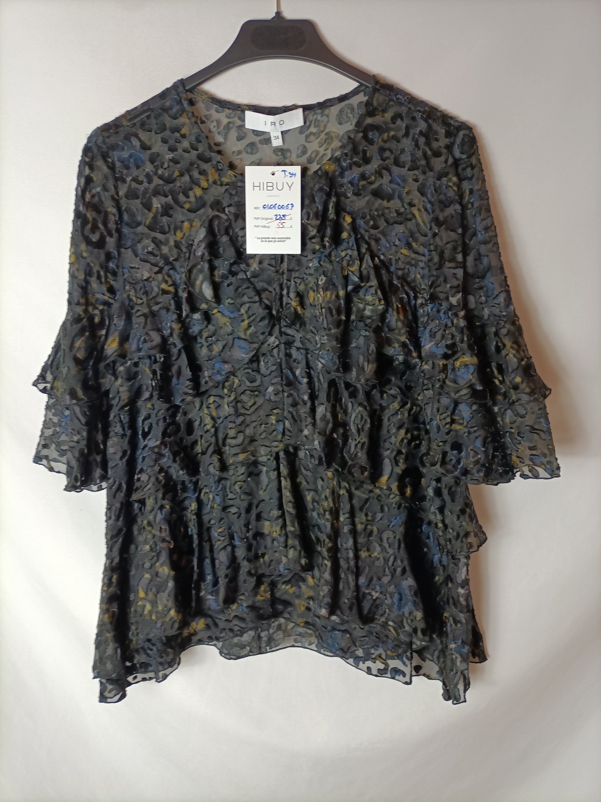 Animal print blouse with velvet and semi-sheer fabric. Flowy with ruffle.