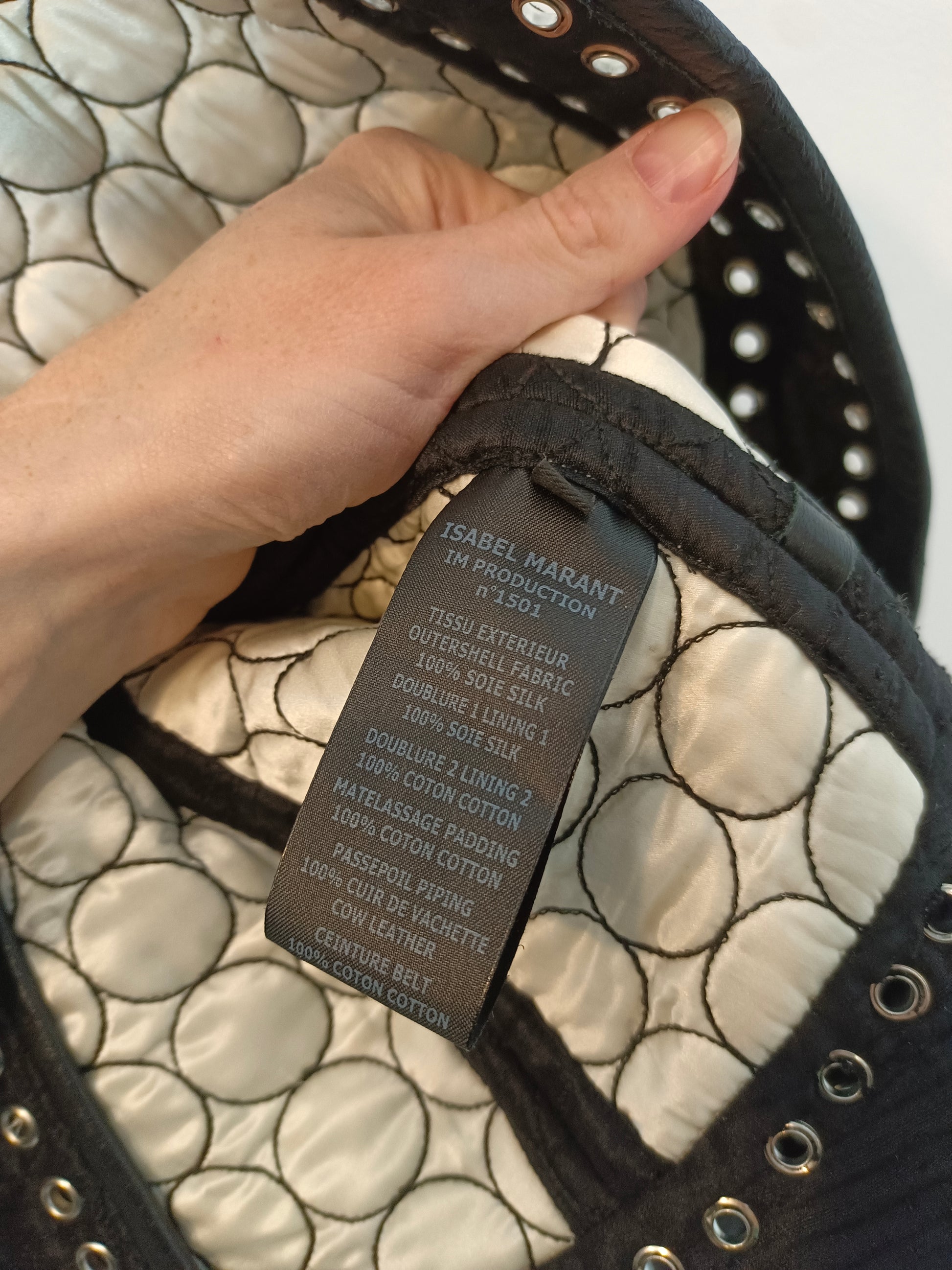 ISABEL MARANT. Black leather and silk textured jacket, size 36