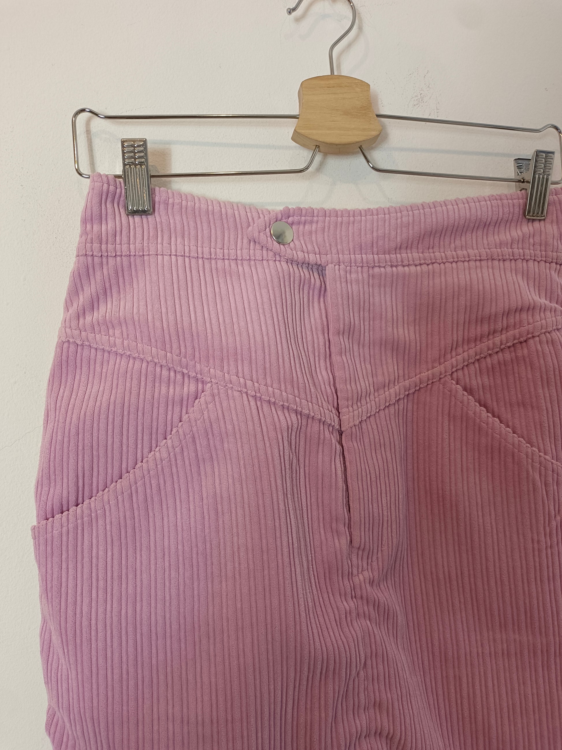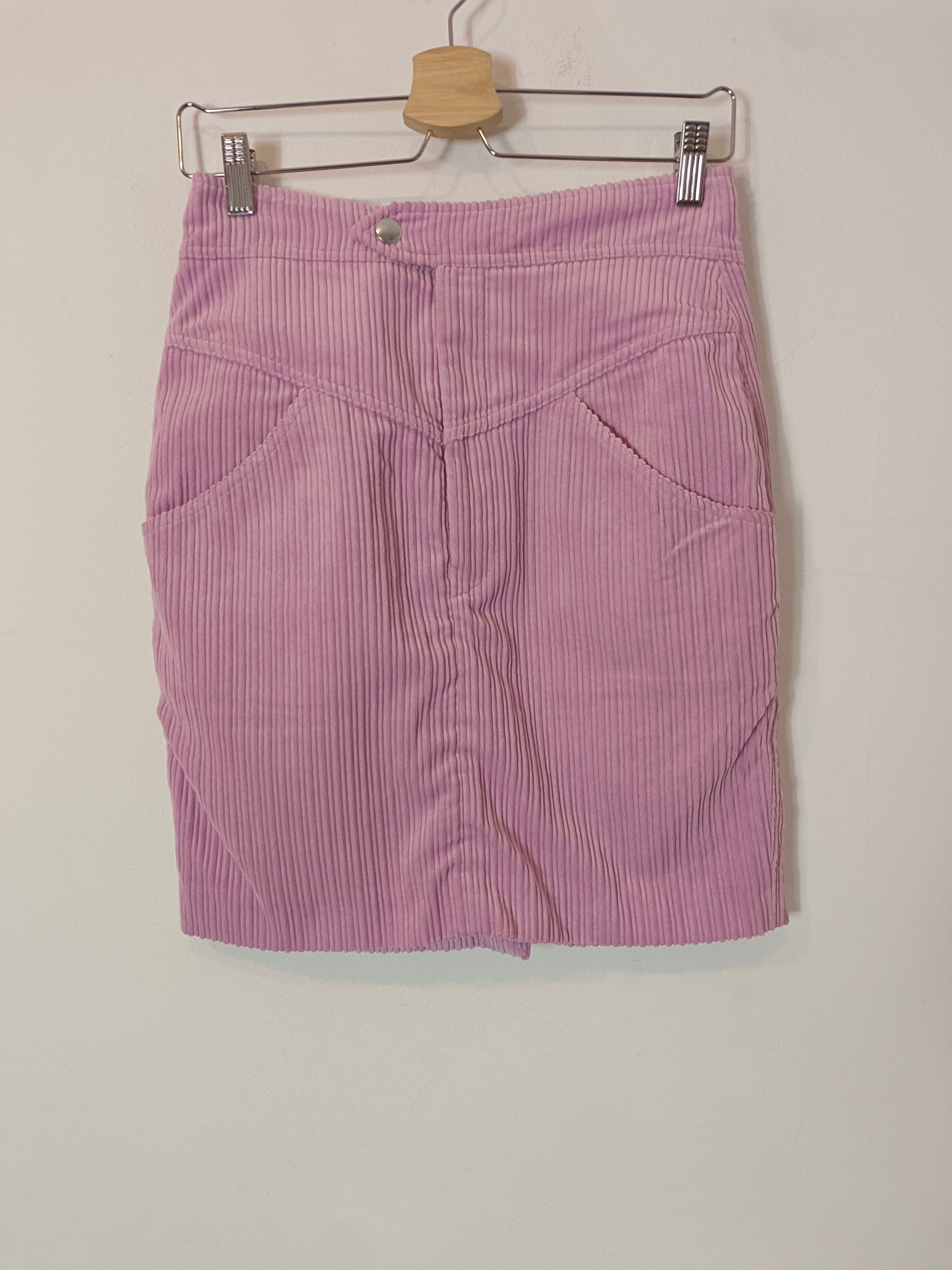 Short mauve corduroy skirt. High-waisted. Waist 36 cm, length 59 cm.