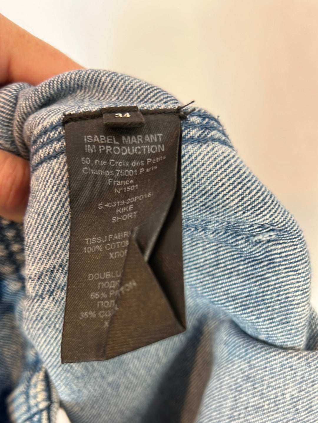 Slouchy denim shorts with a distressed effect. Belted. Waist 41cm, length 42cm.