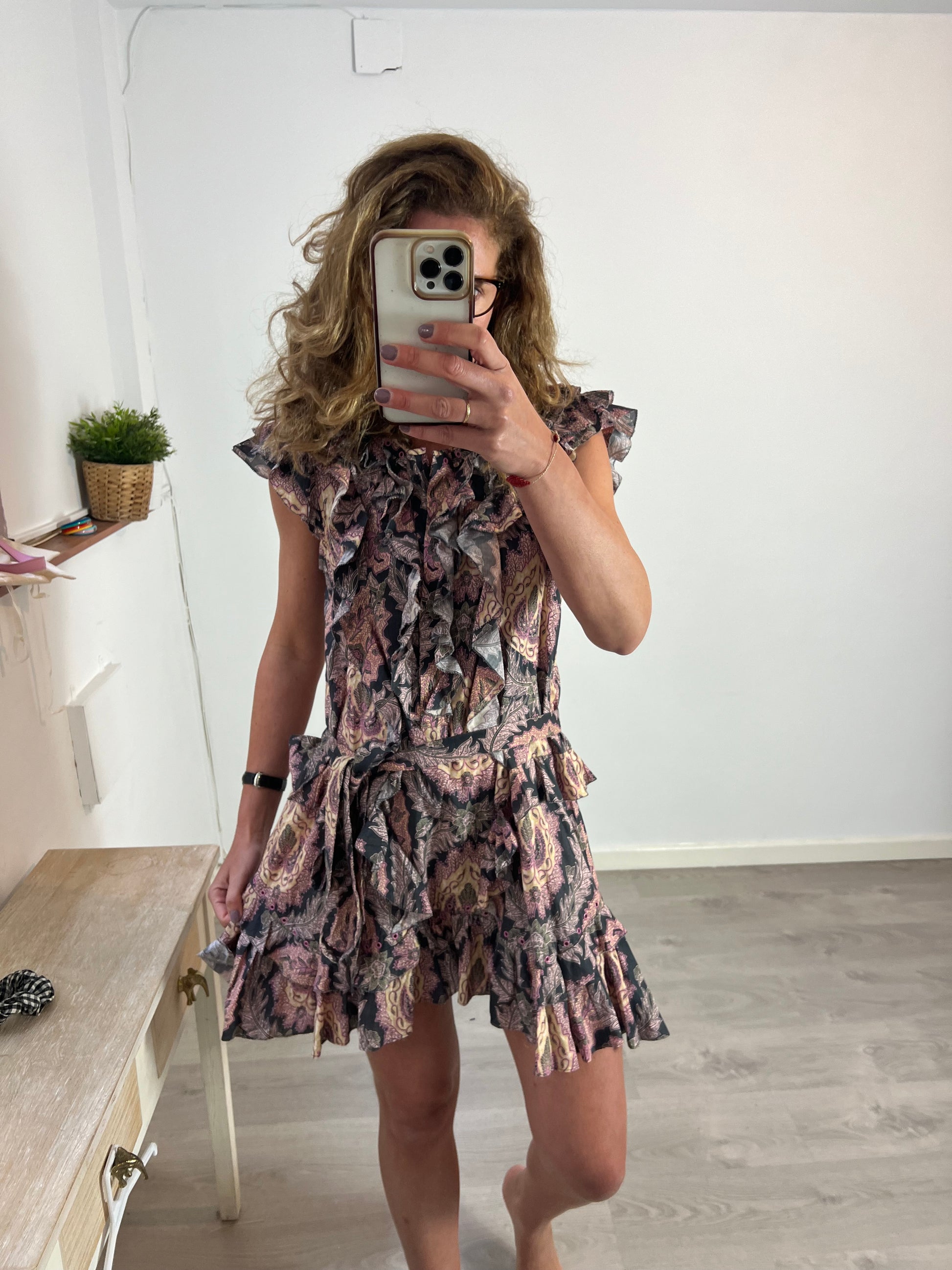 Vestido corto volantes estampado. De sisa a sisa 48cm, largo 90cm