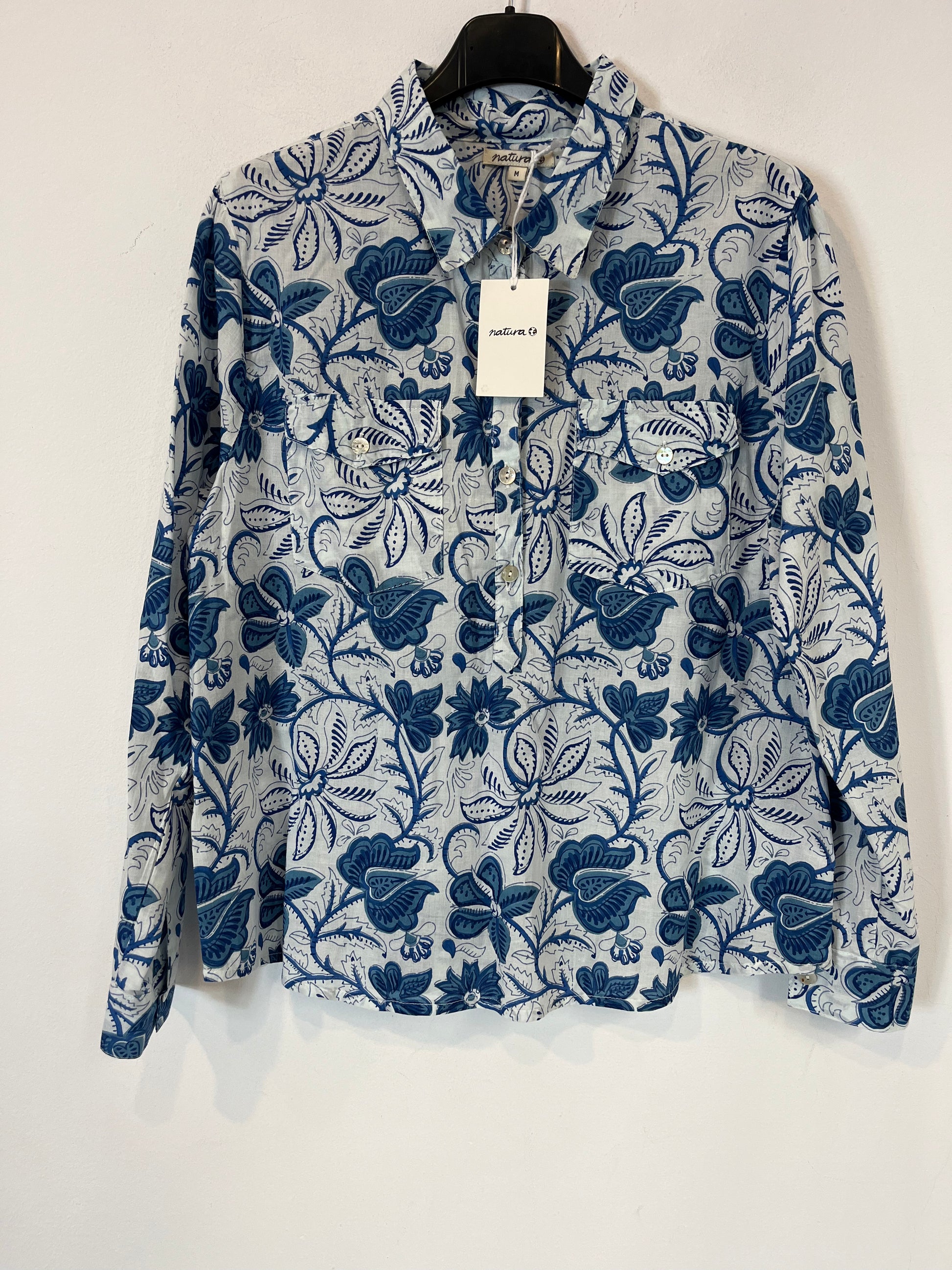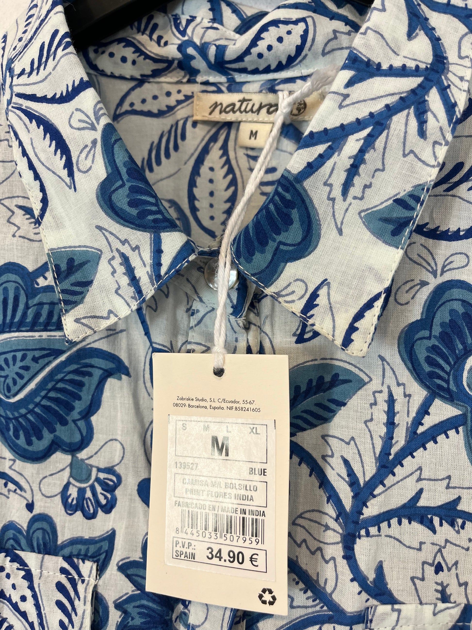 NEW WITH TAG. Blue floral cotton blouse. Length 58 cm.
