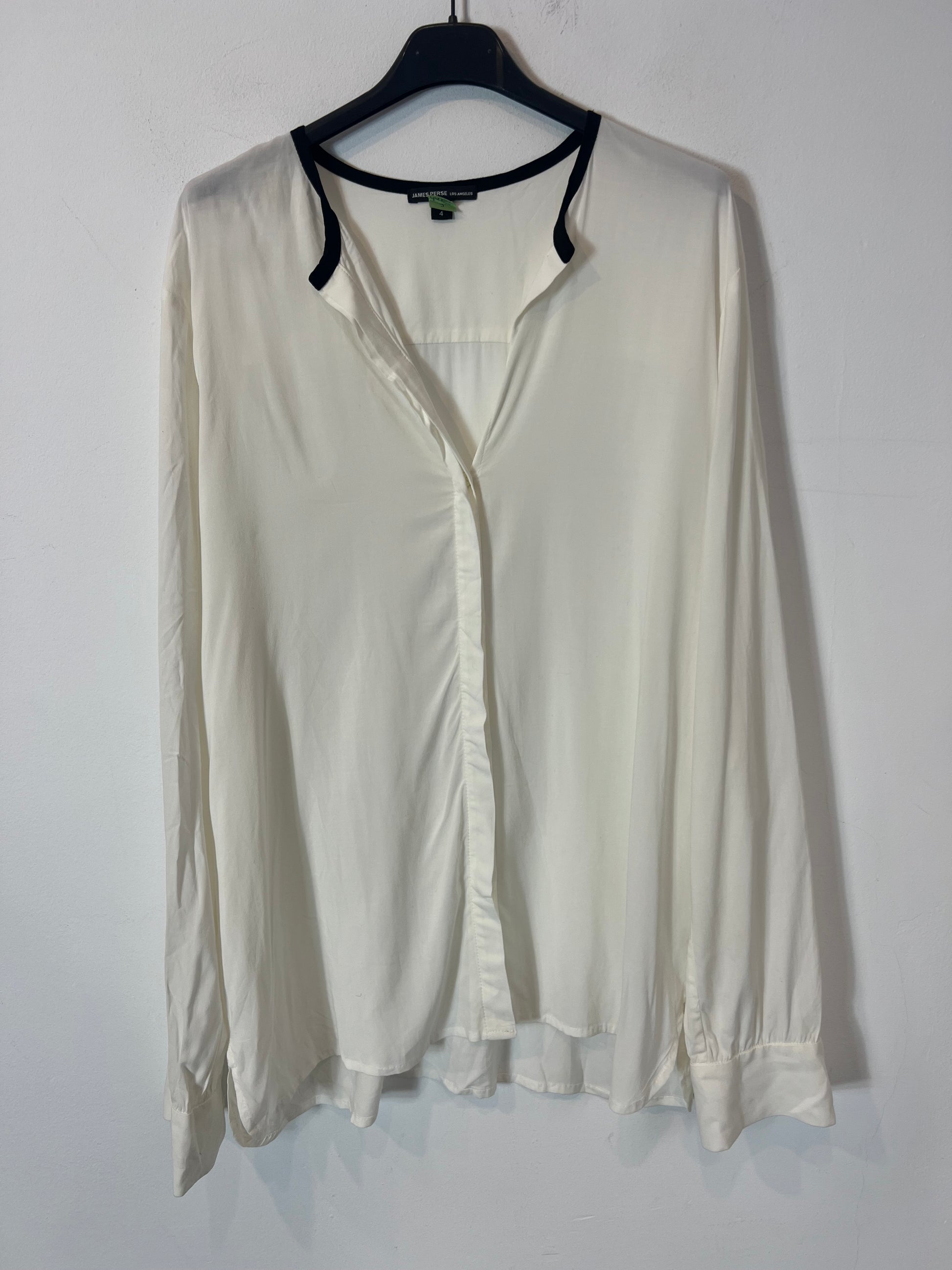 Flowy white blouse with neck detail. 53 cm from armhole to armhole, 70 cm long.