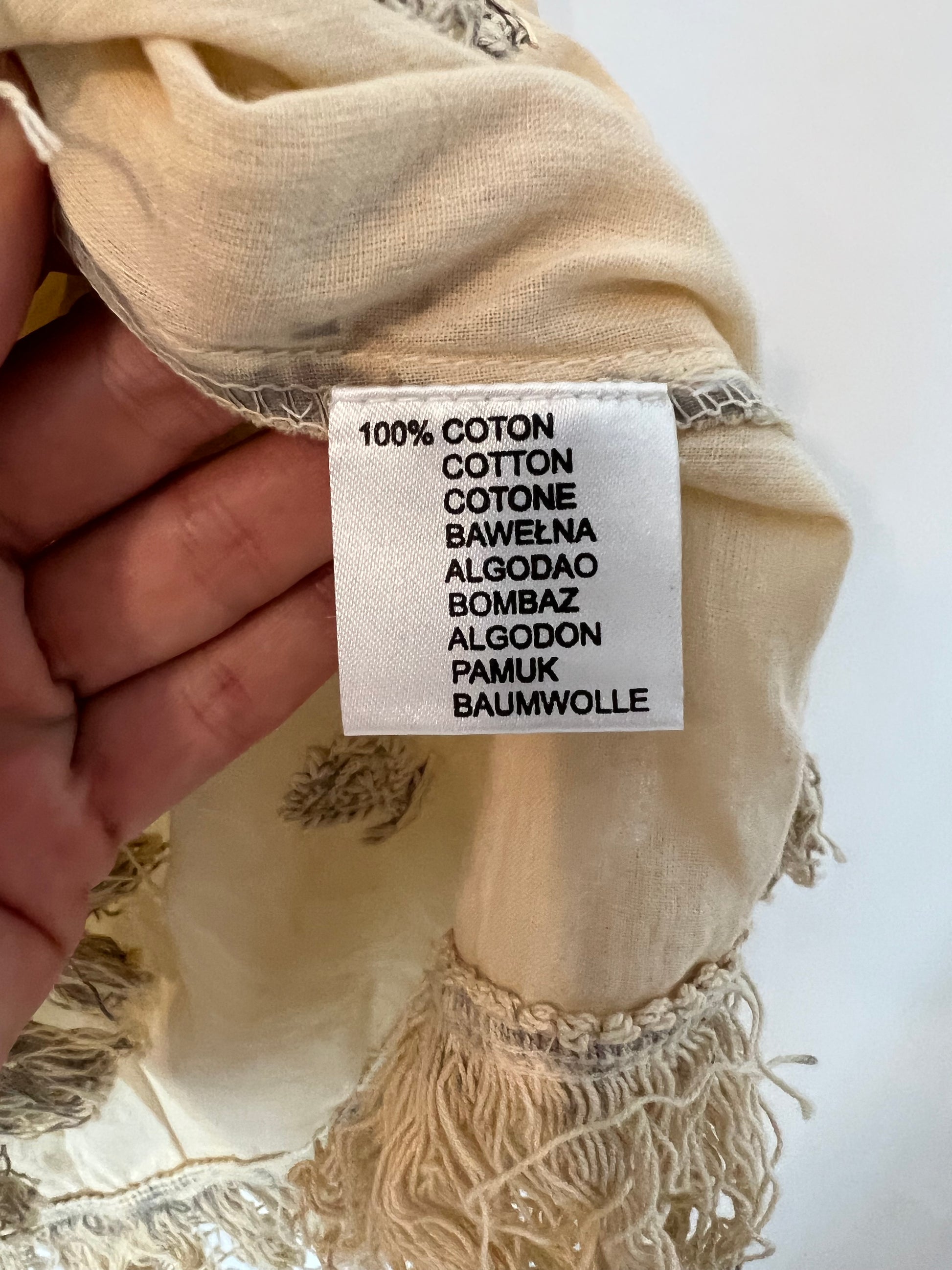 Blusa corta beige bordados y flecos 100% algodón