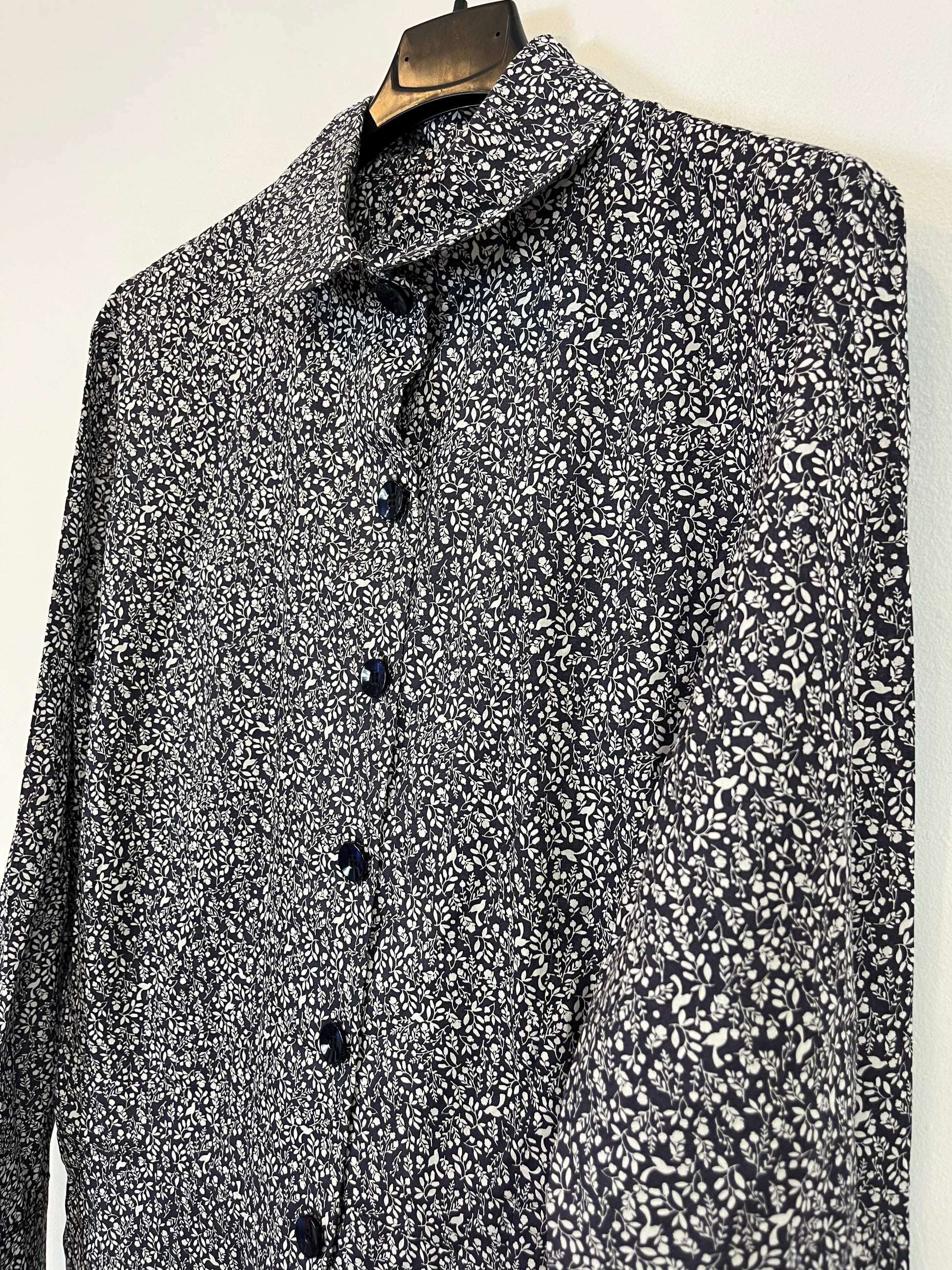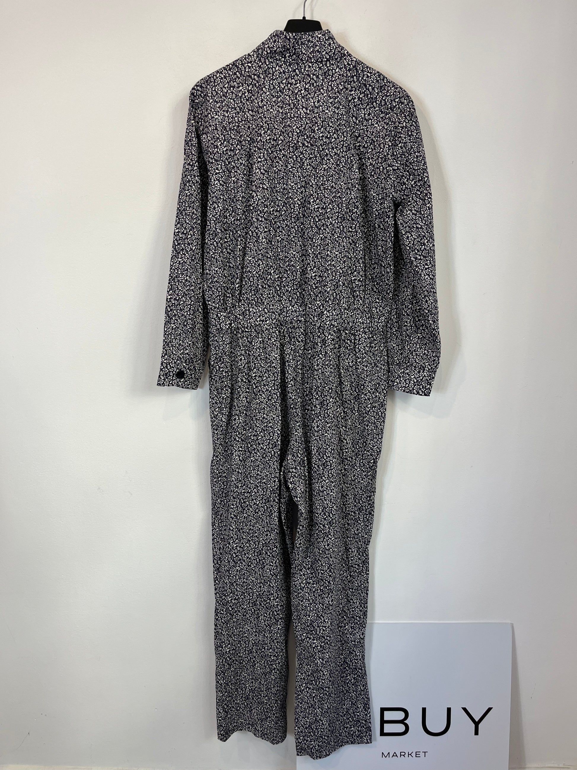 Espalda 45 cm, largo 145 cm. Mono largo estampado azul. No elástico. Talla como una M