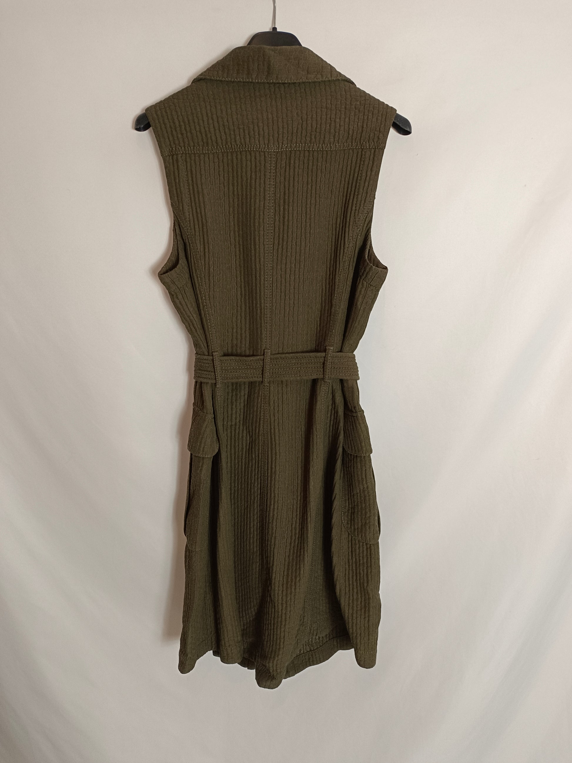 KAREN MILLEN. Vestido verde sahariano T.40