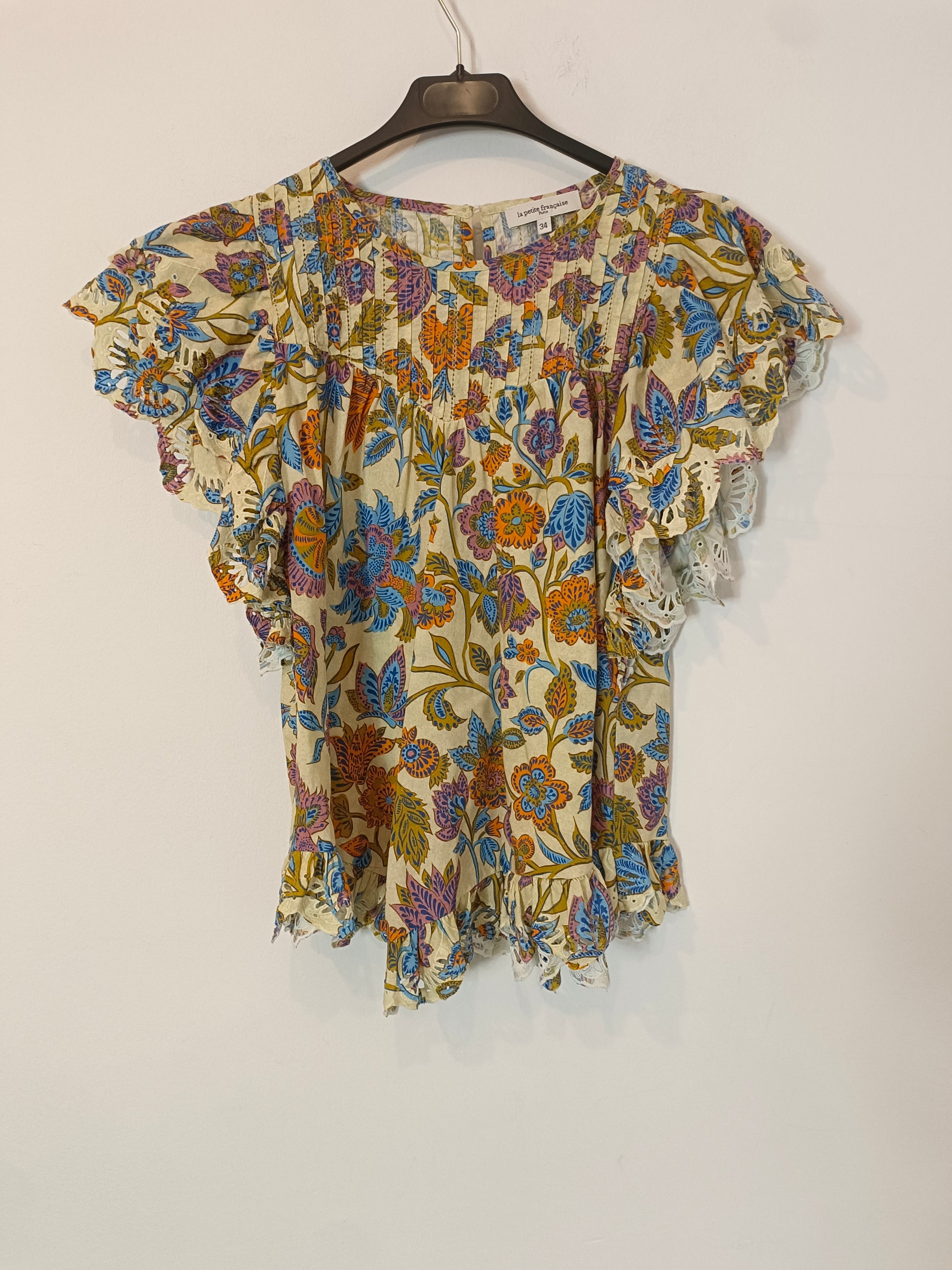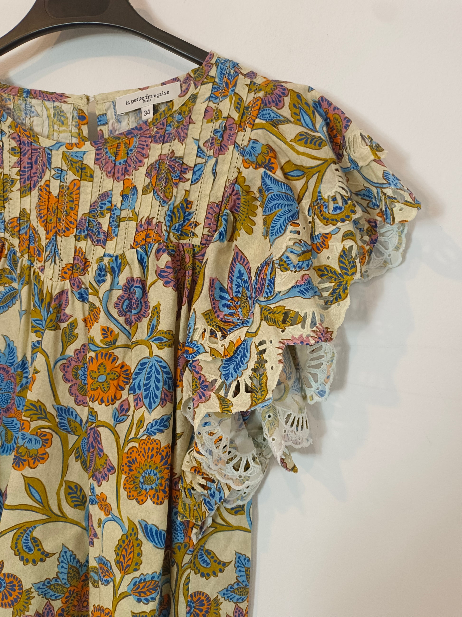 THE PETITE FRANÇAISE. Beige floral blouse T.34 (S)