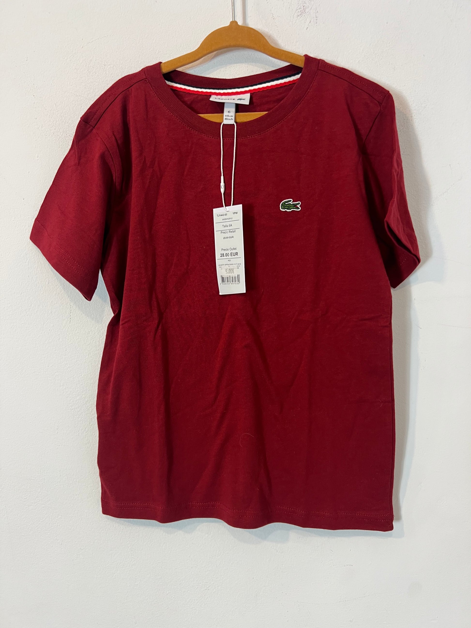 LACOSTE. Camiseta burdeos logo. T 6 años
