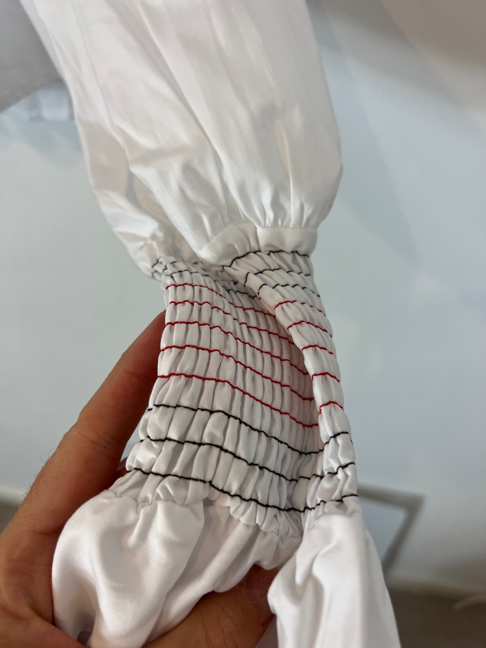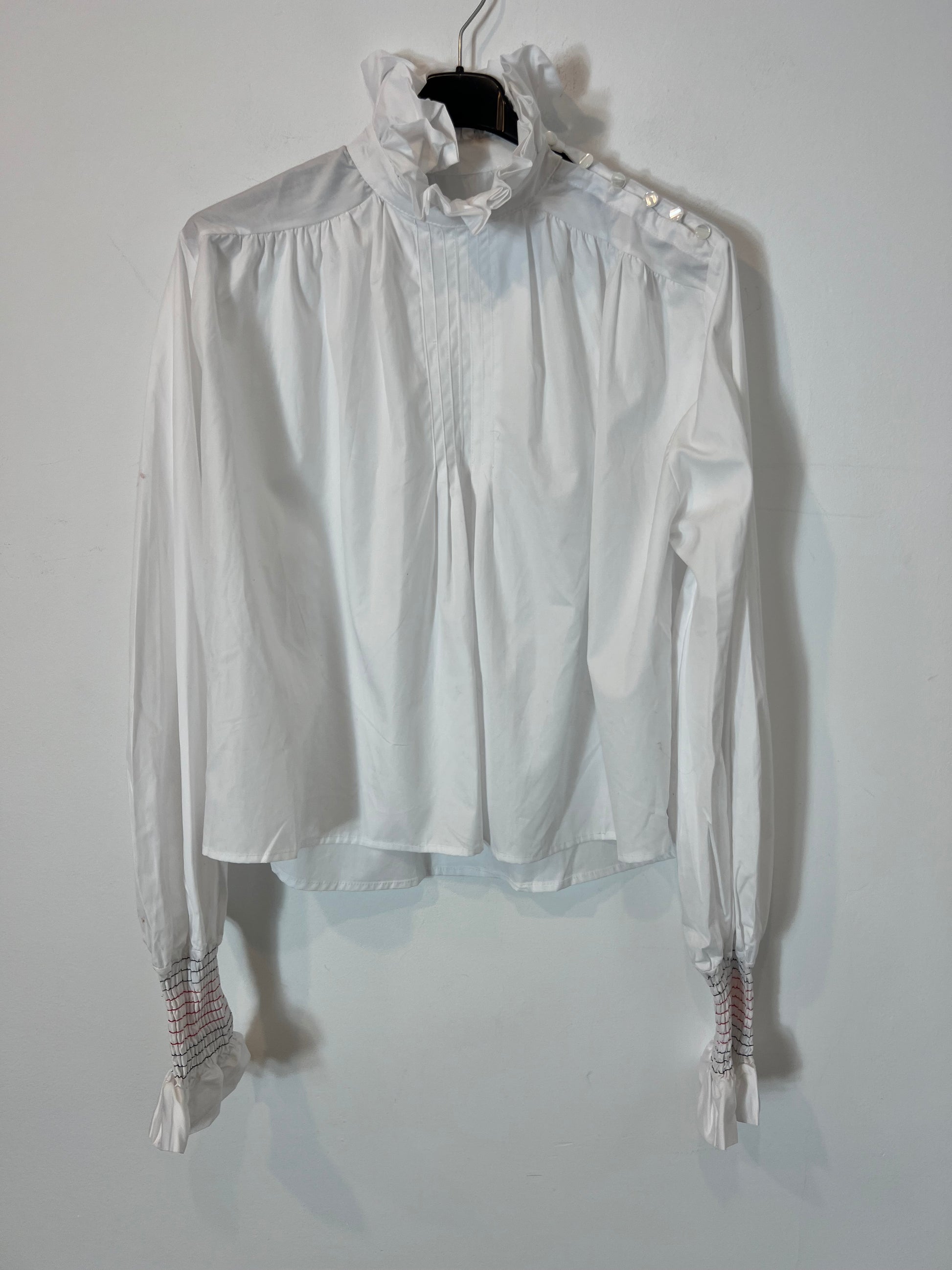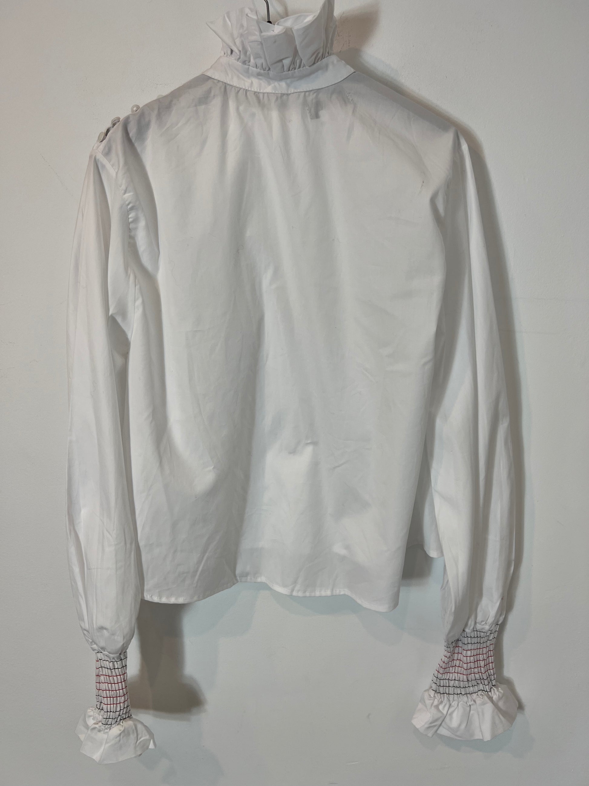 LAGANINI. Blusa blanca volante cuello T.s/m