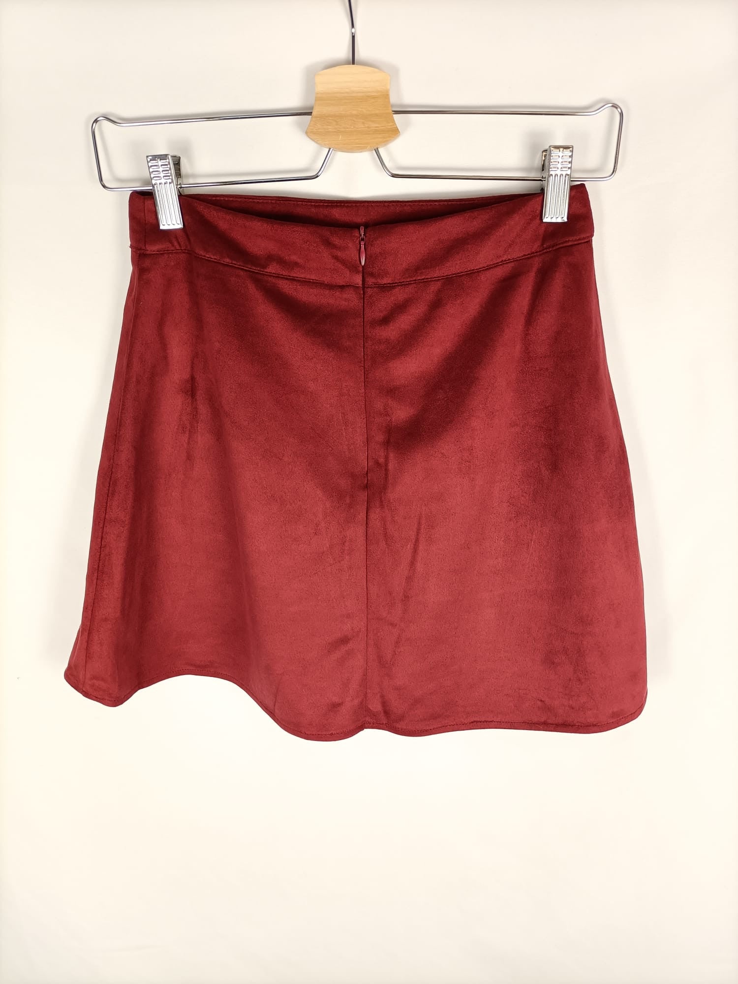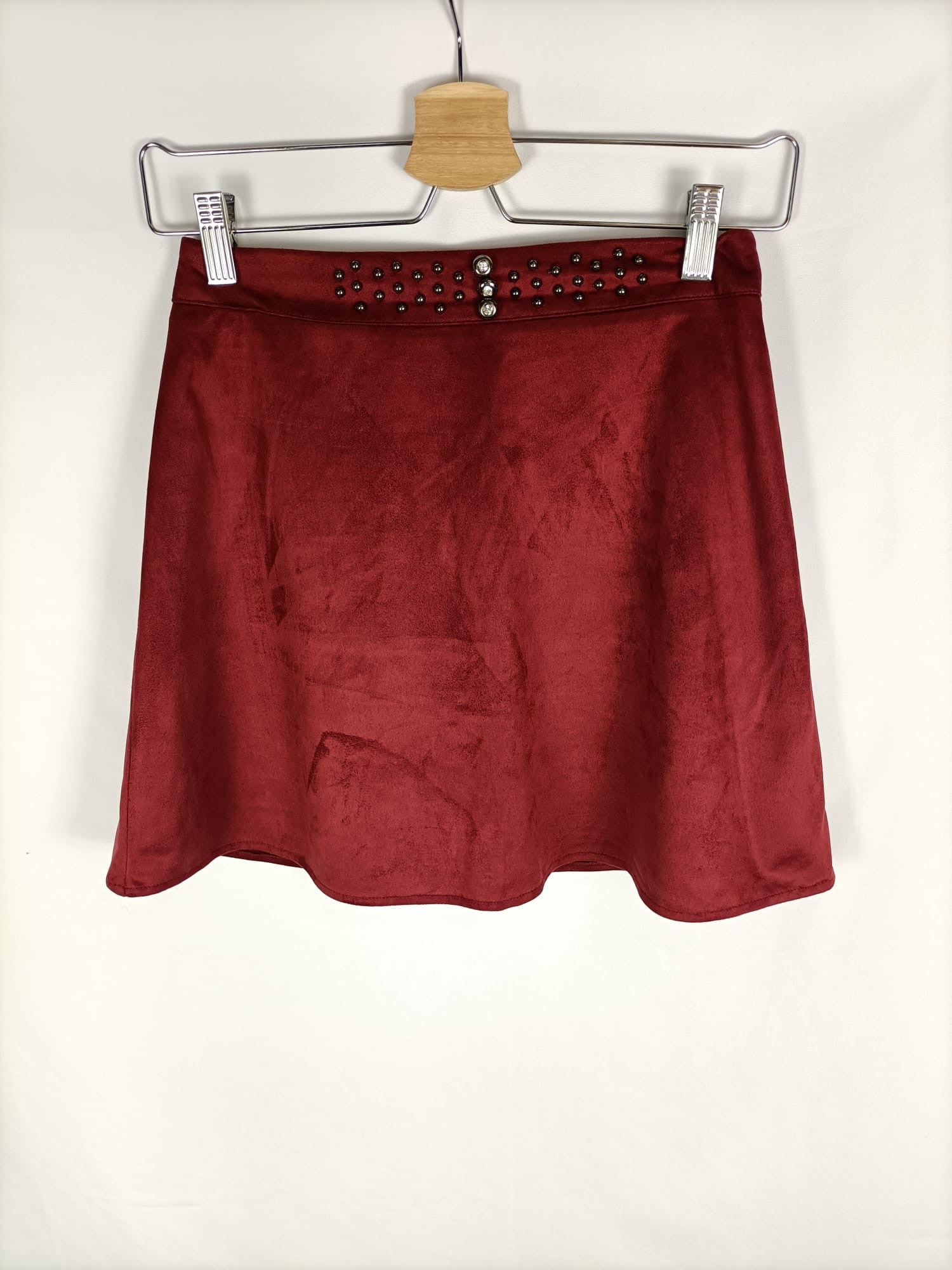 La morena.s. falda de antelina burdeos con abalorios en la cintura. Elástica y fluida. Cintura 34 cm largo 41 cm