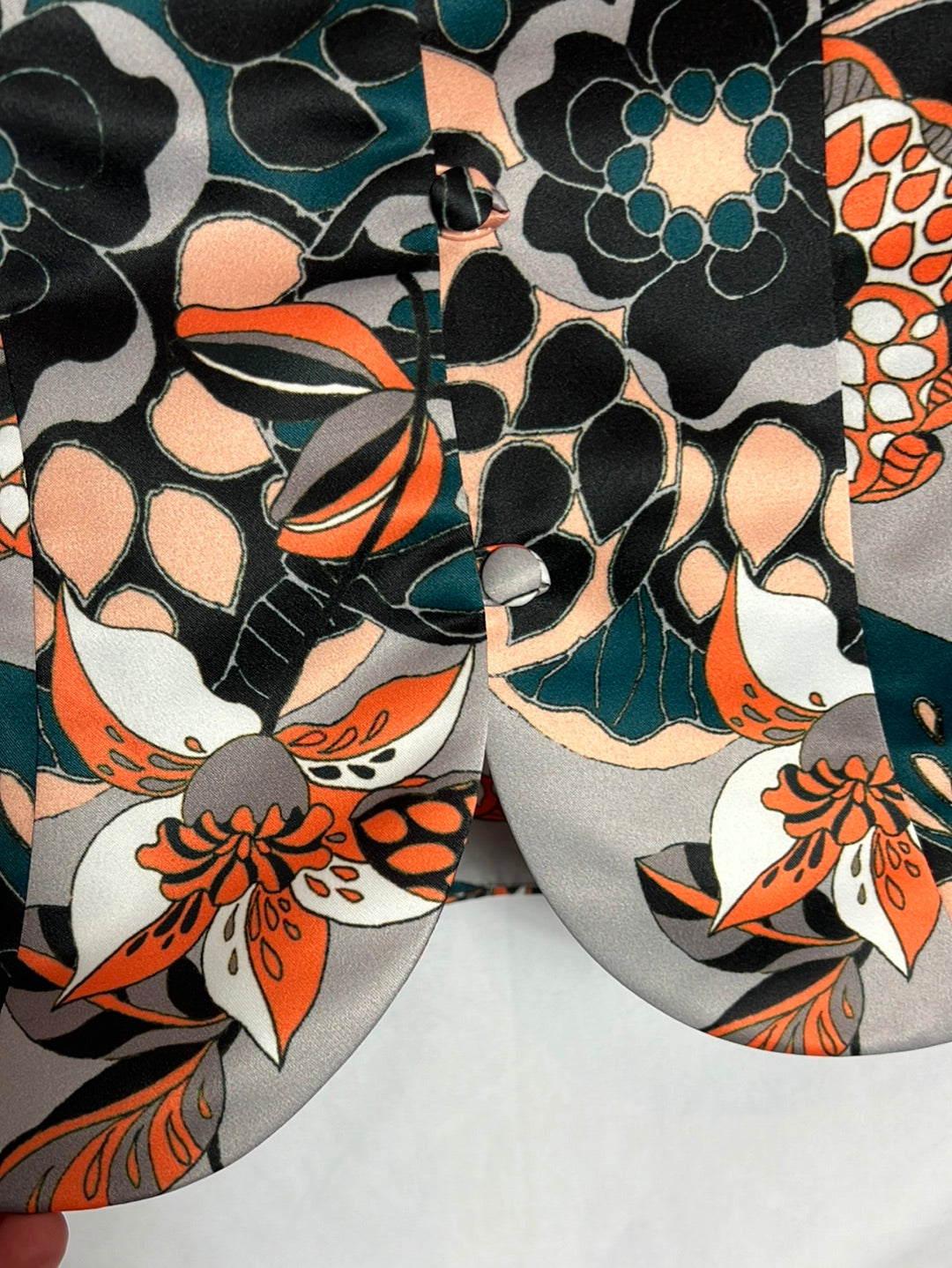 Gray satin floral print vest. 43cm from armpit to armpit, 63cm long.