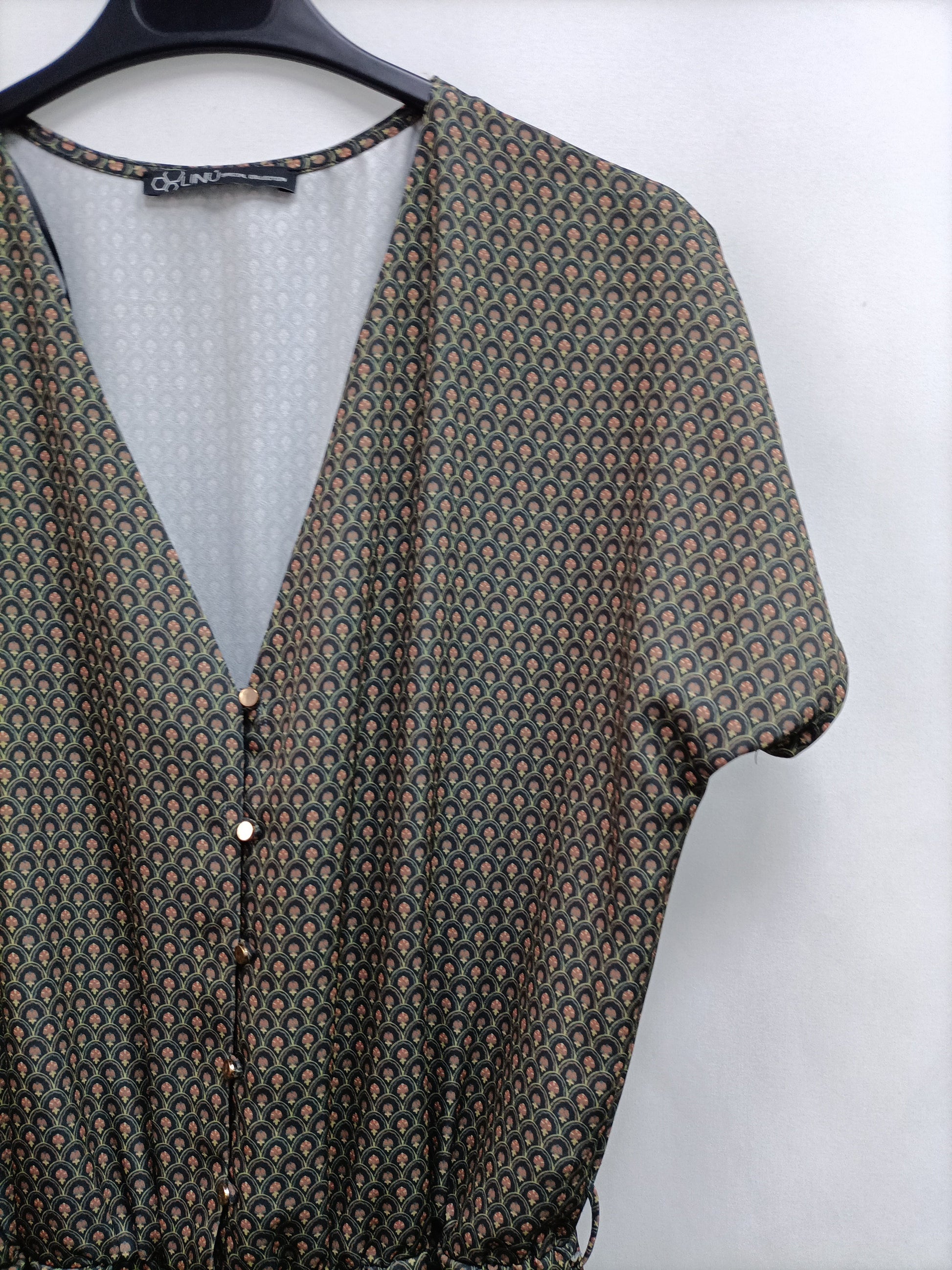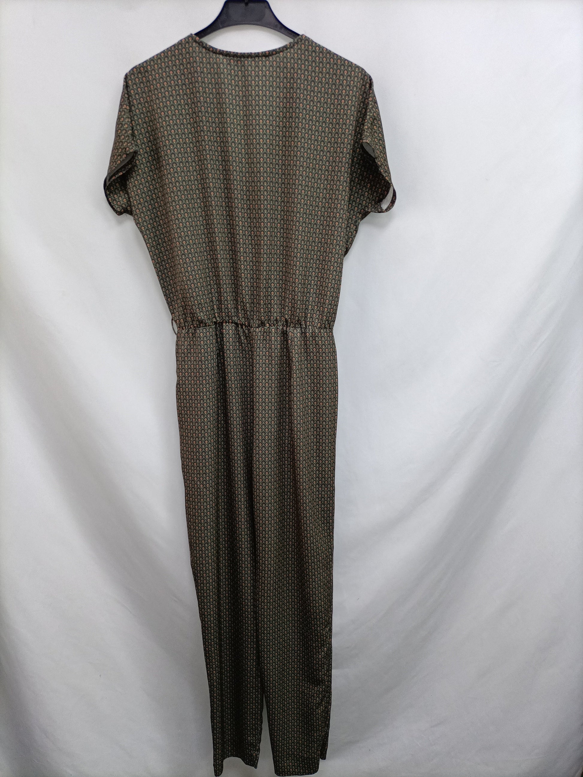 Mono fluido verde con estampado de flores.Cintura elástica. Largo 144 cm.