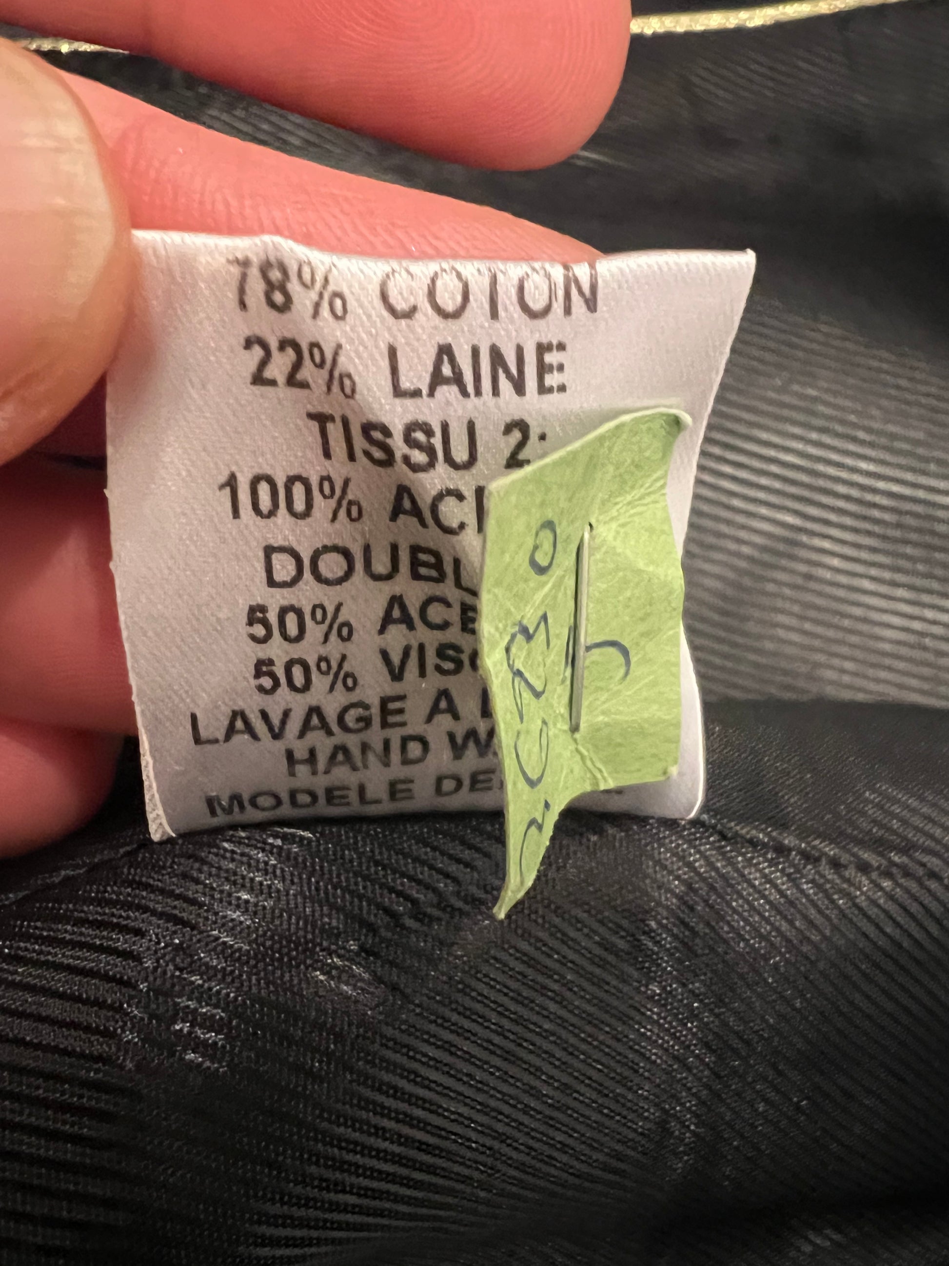 Blazer textura solapa negra. 78% algodón y 22% lana. Tara: tiene un botón descosido que está dentro del bolsillo. Largo 60cm y de sisa a sisa 42cm