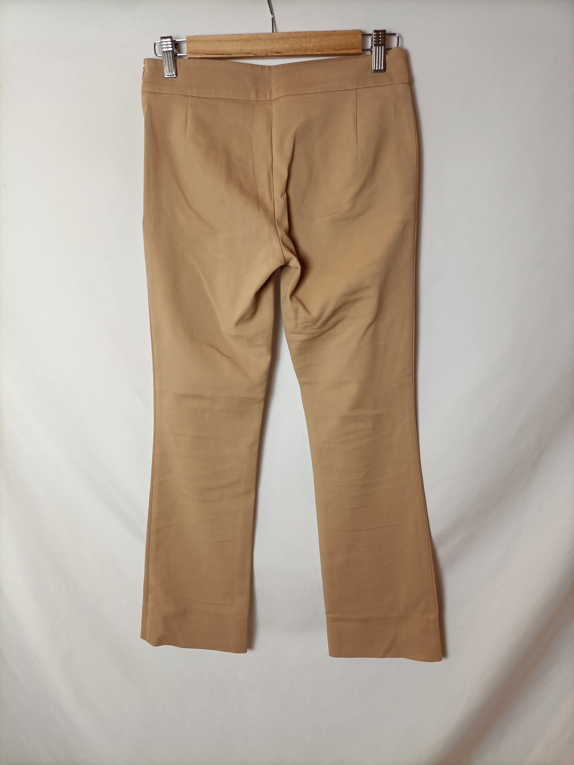 Beige flared chino-style trousers. Waist 35 cm, length 91 cm.