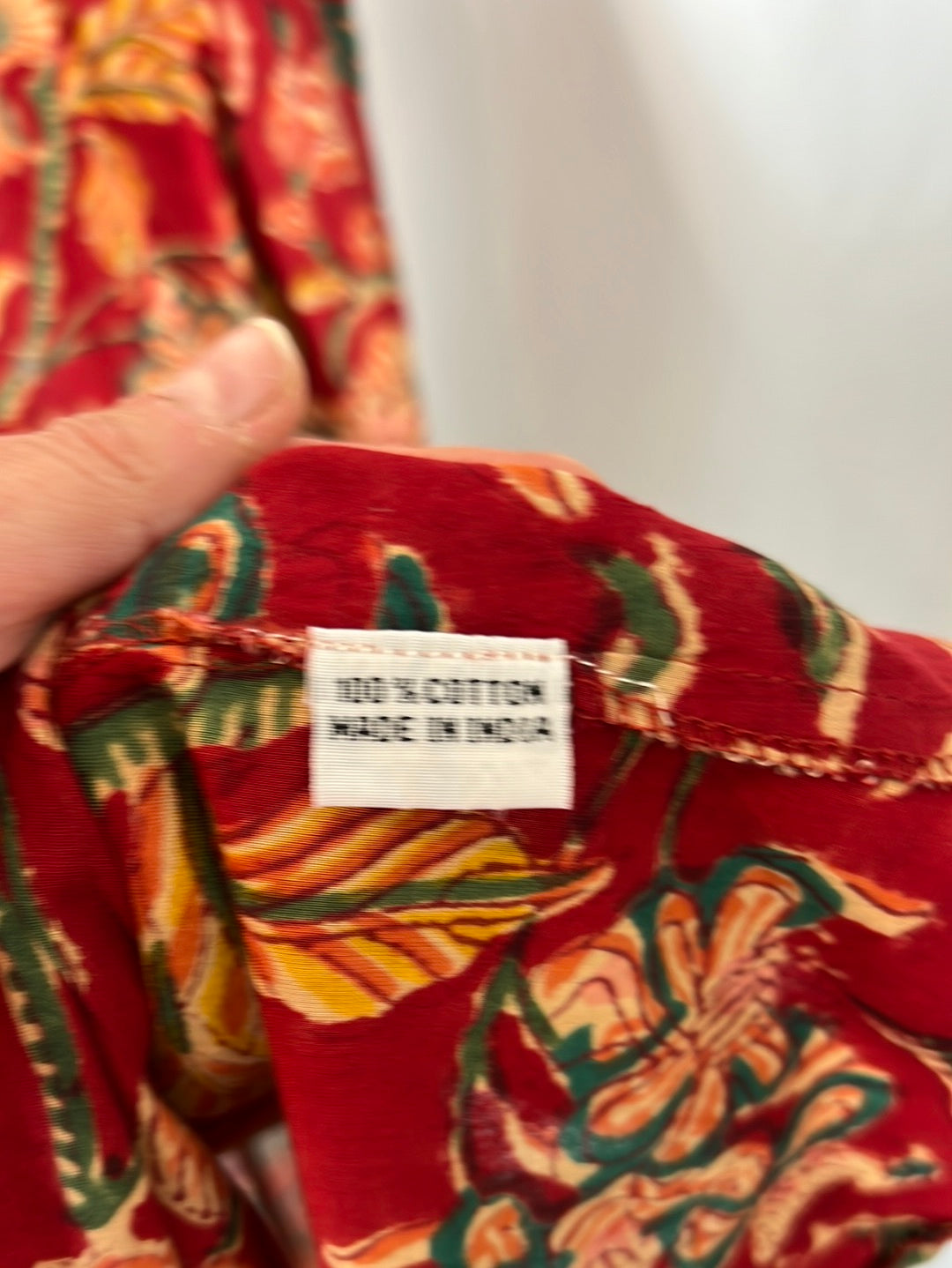 Burgundy cotton midi dress with a floral print. From armhole to armhole 44 cm, waist 39 cm, length 110 cm, non-elastic.