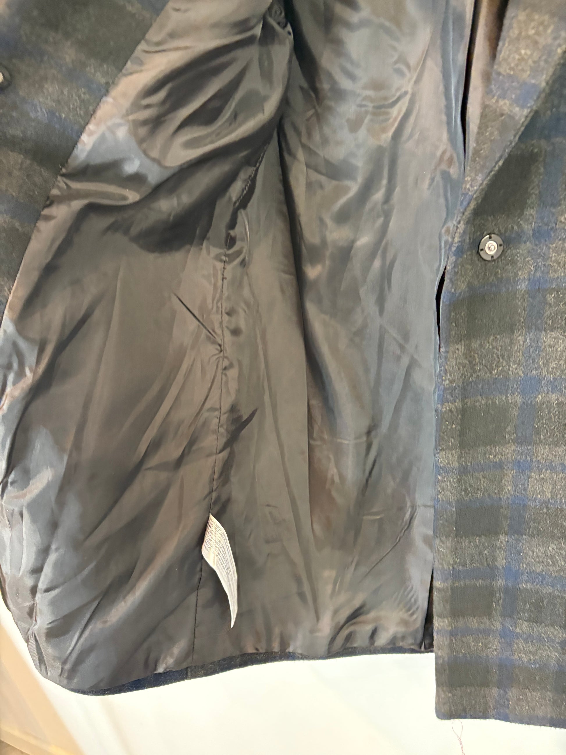 Grey cloth coat with blue checks. Back 69 cm, length 83 cm. Non-elastic.