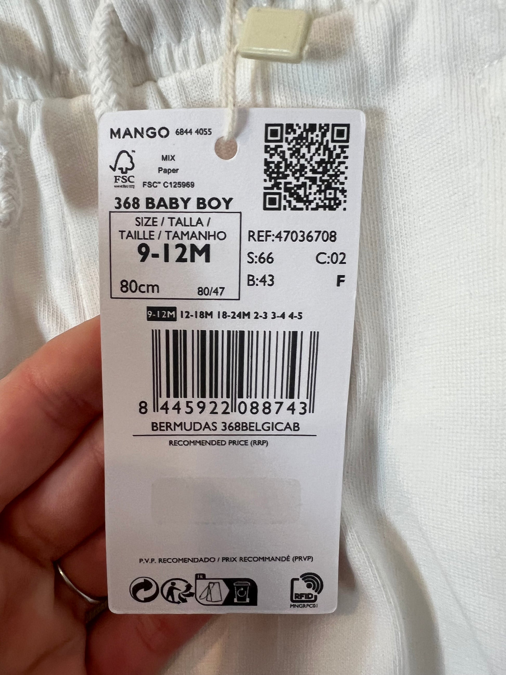 MANGO. Bermuda blanca felpa. T 9- 12 meses