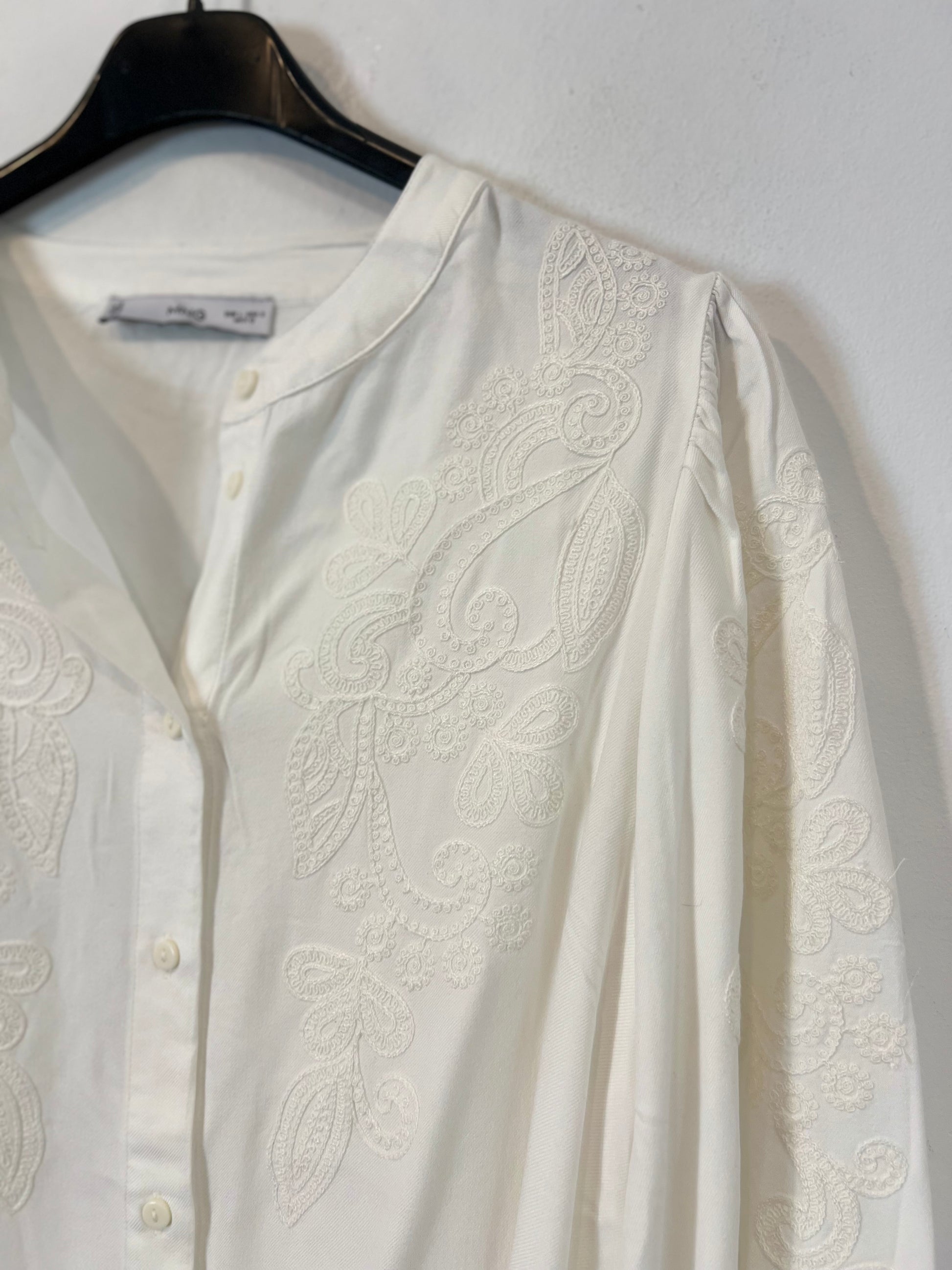 MANGO. Tl embroidered white blouse
