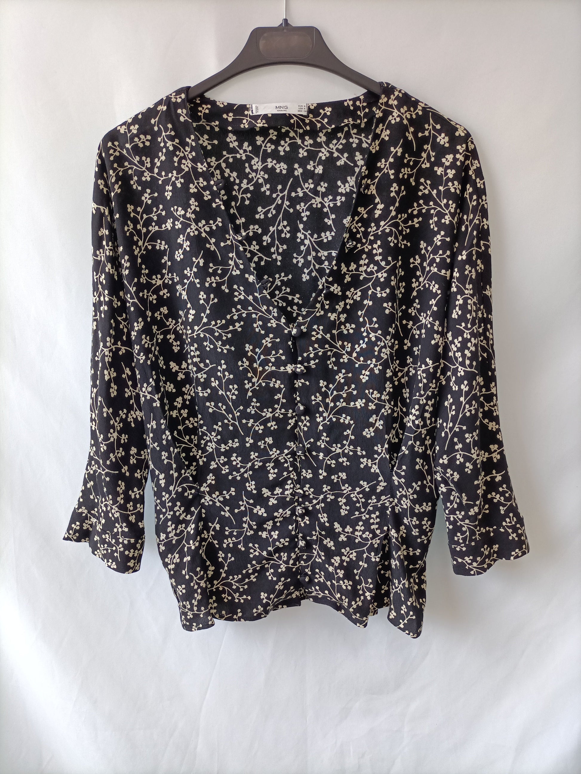 MANGO. Black floral blouse Ts