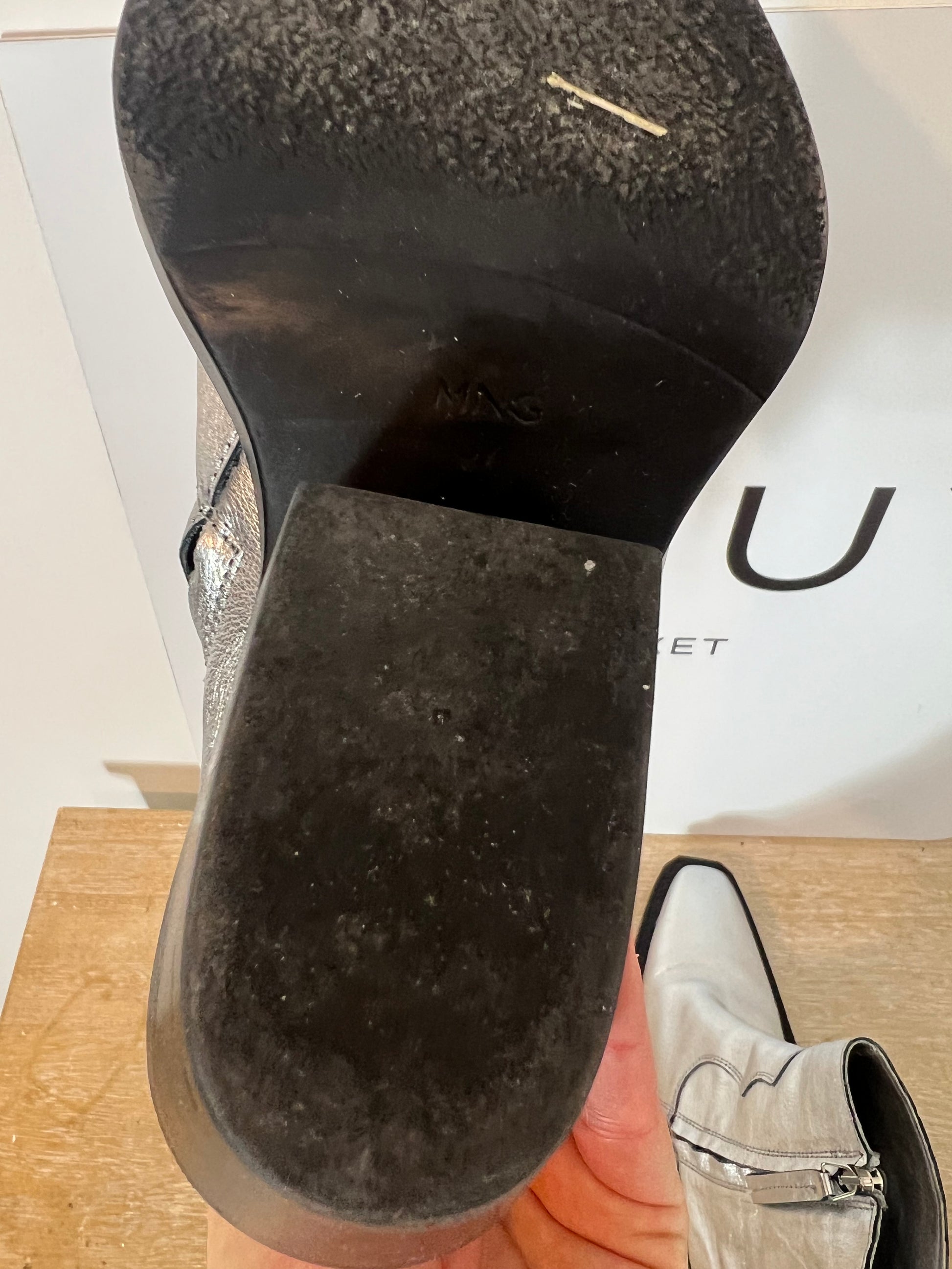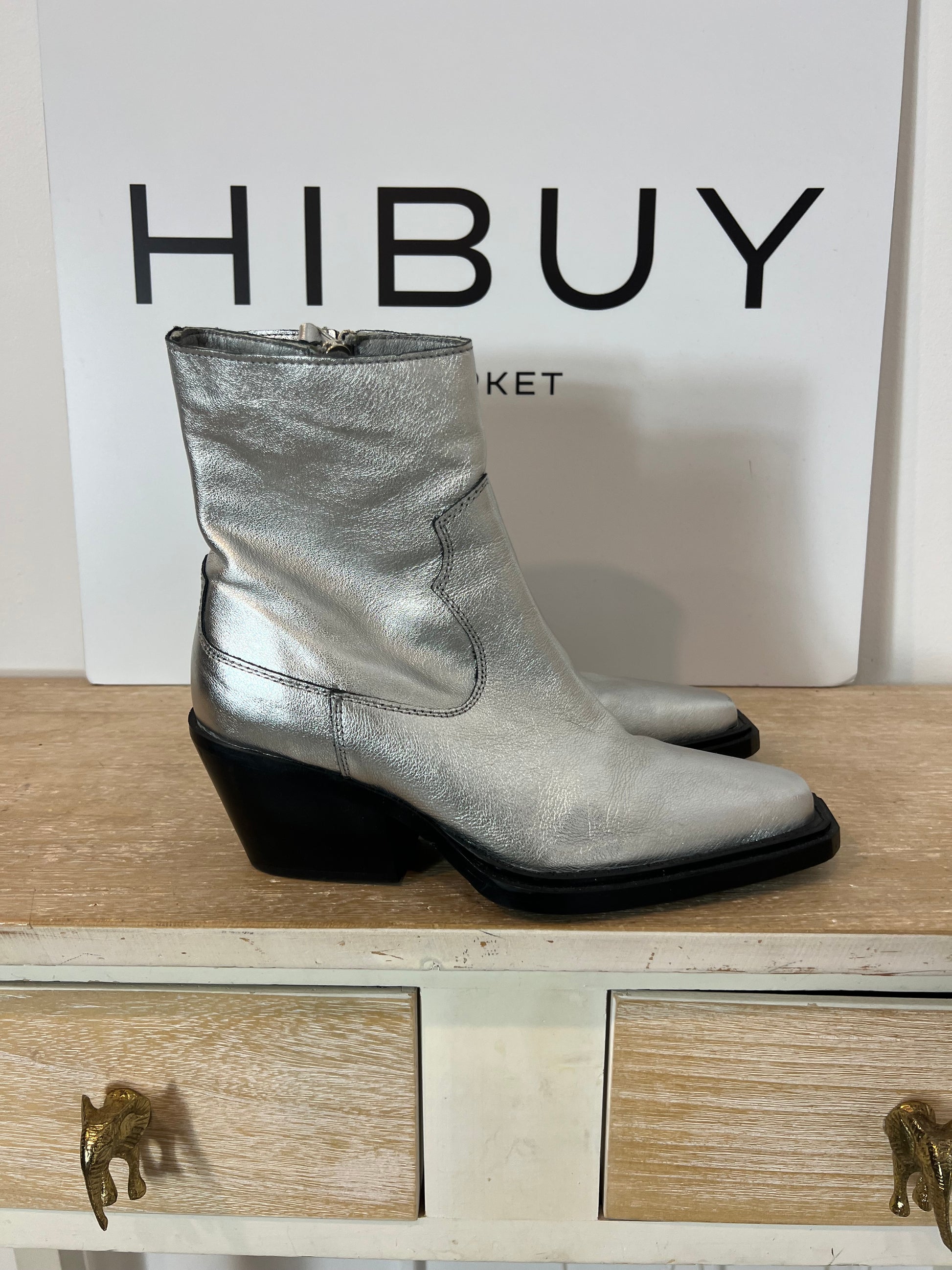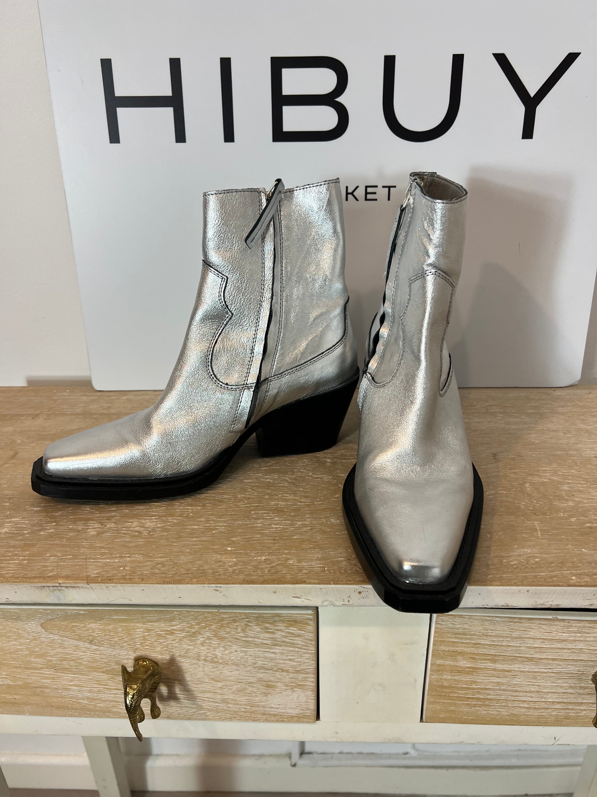 Botines de piel plateados. Cremallera lateral. Tacón 7 cm