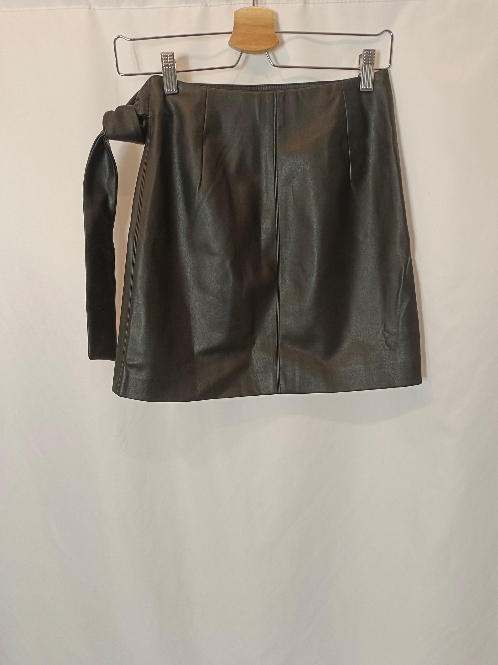 Black faux leather wrap skirt. Non-elastic. Waist 32 cm, length 42 cm.