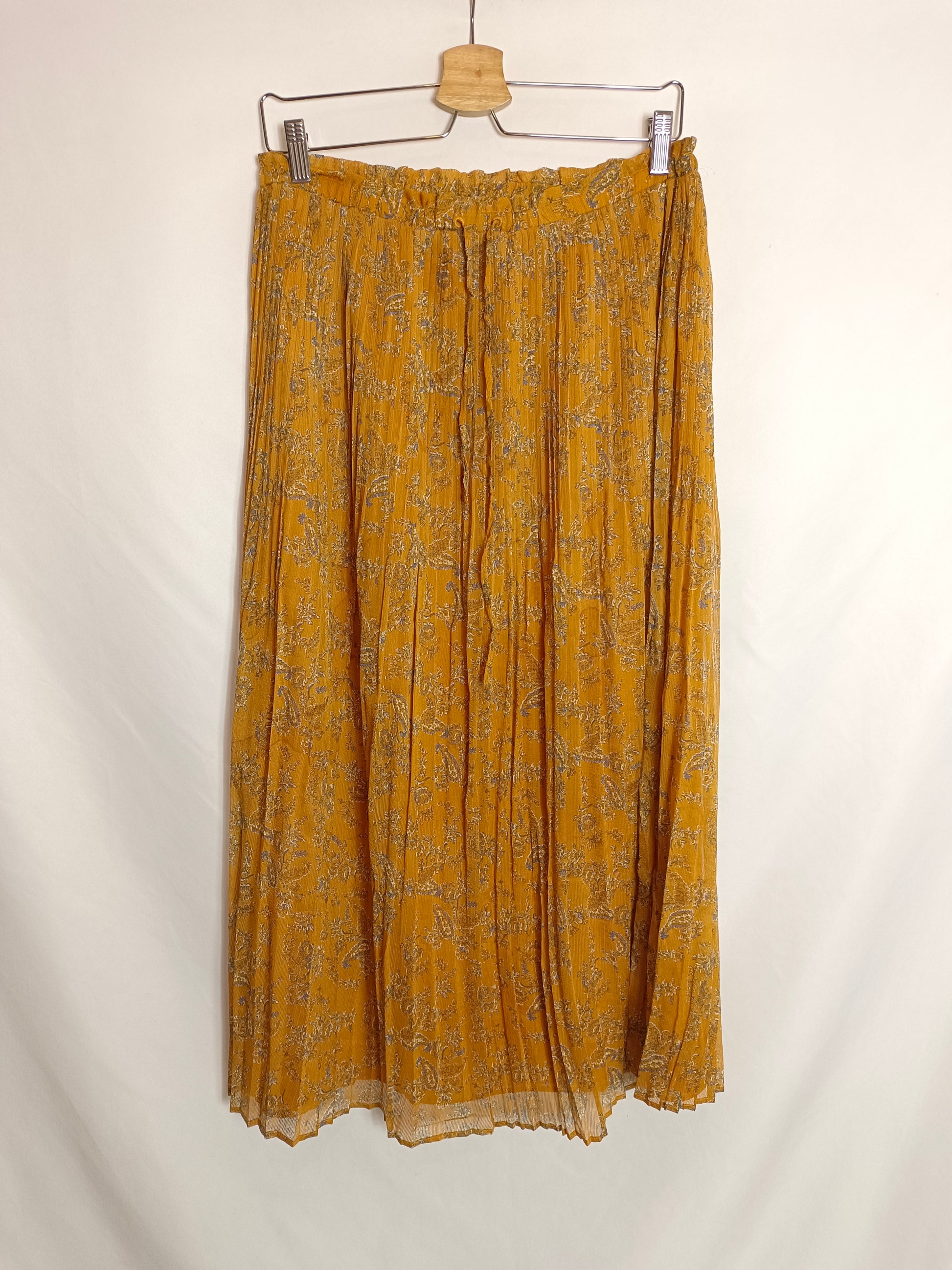MANGO. Mustard floral skirt Tl