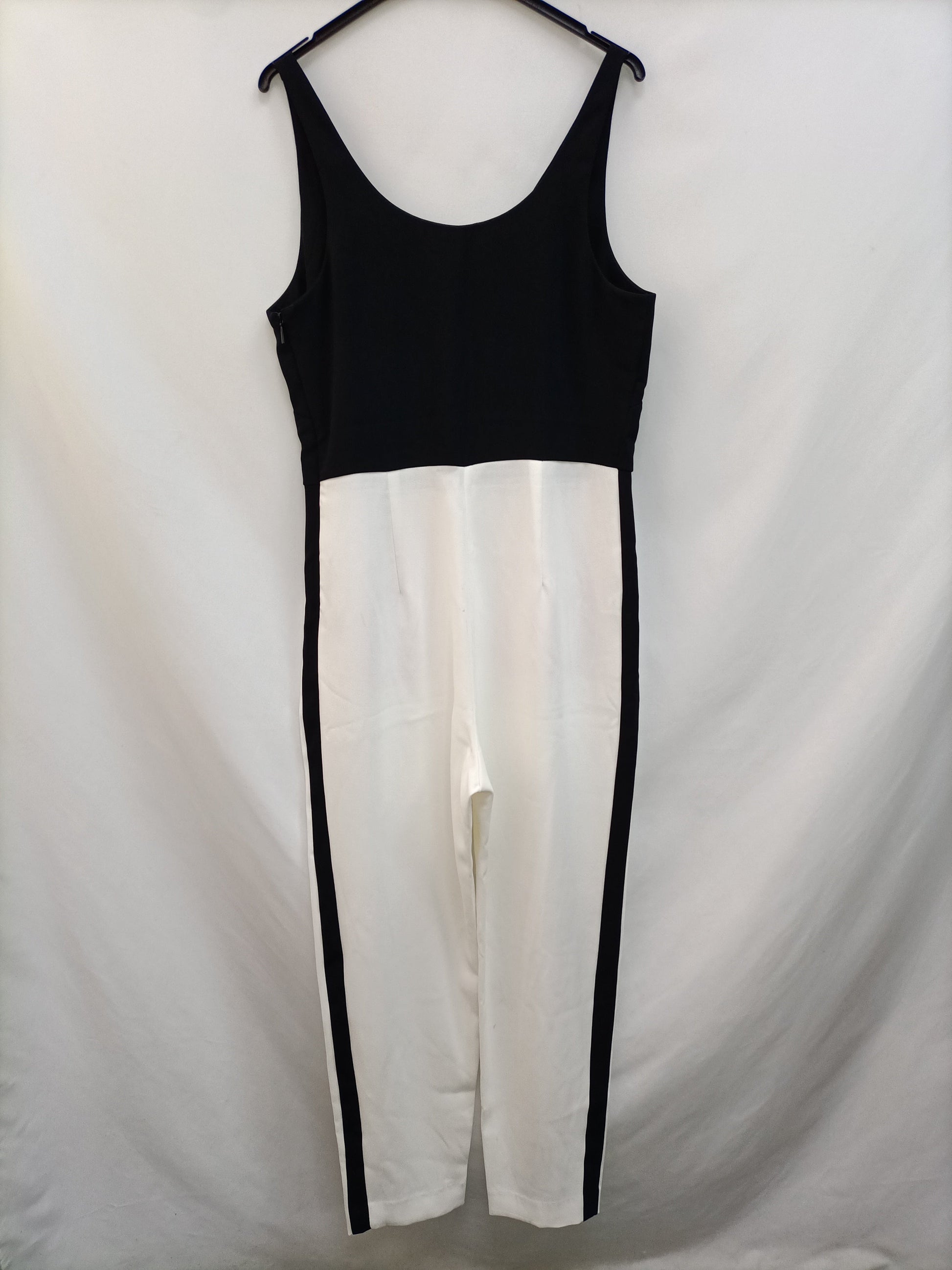 NEW WITH TAG. Two-tone flowing jumpsuit. 17.5" (44 cm) from armpit to armpit, 56" (142 cm) long.
