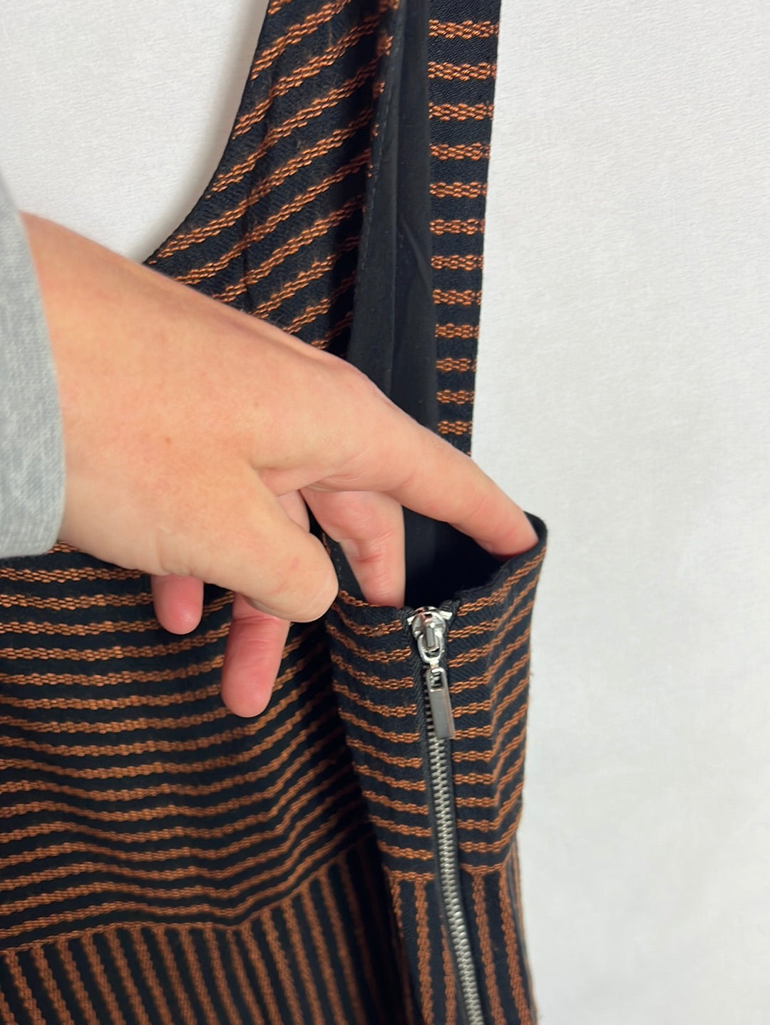 mono fluido negro y marrón estilo bordado. De sisa a sisa 38cm, largo 121cm