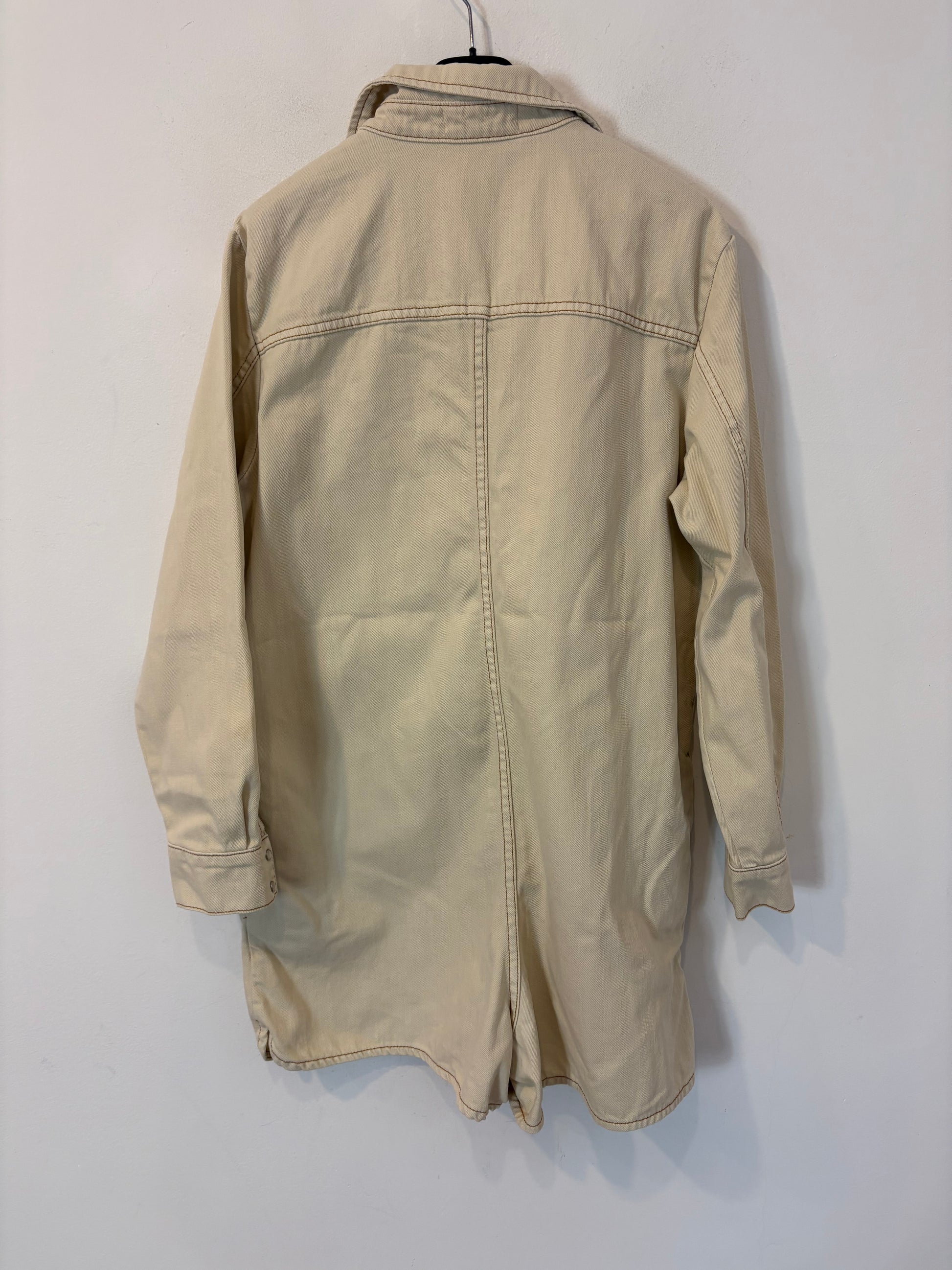 MANGO. Mono denim corto beige