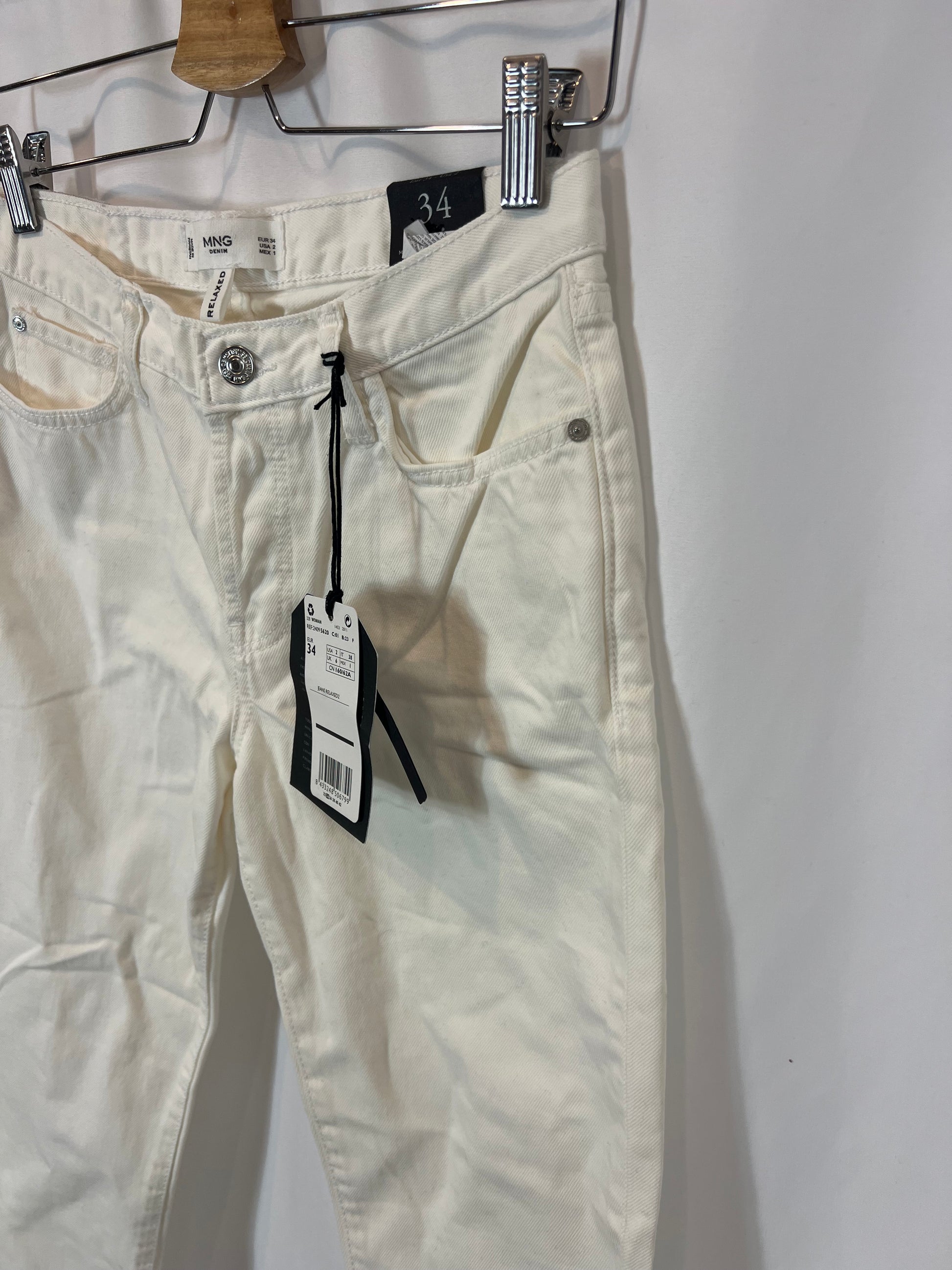 White buttoned trousers with fringes. Non-elastic. Waist 35.5 cm, length 93 cm.