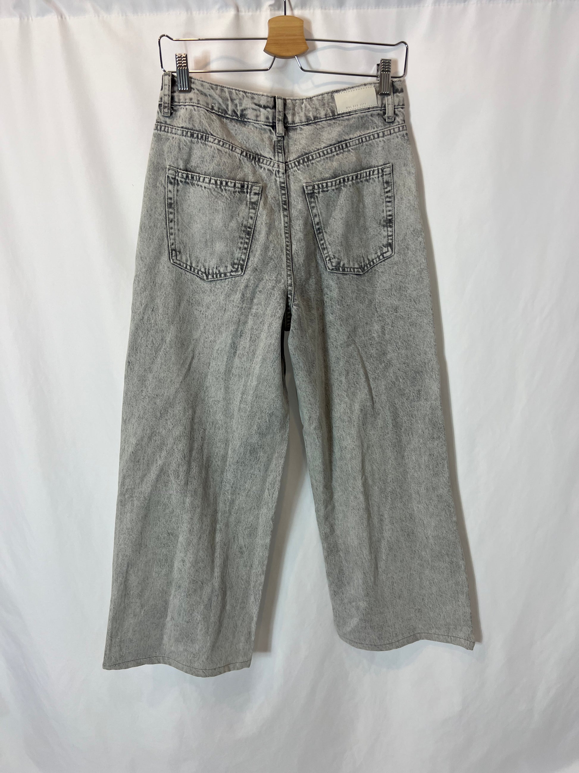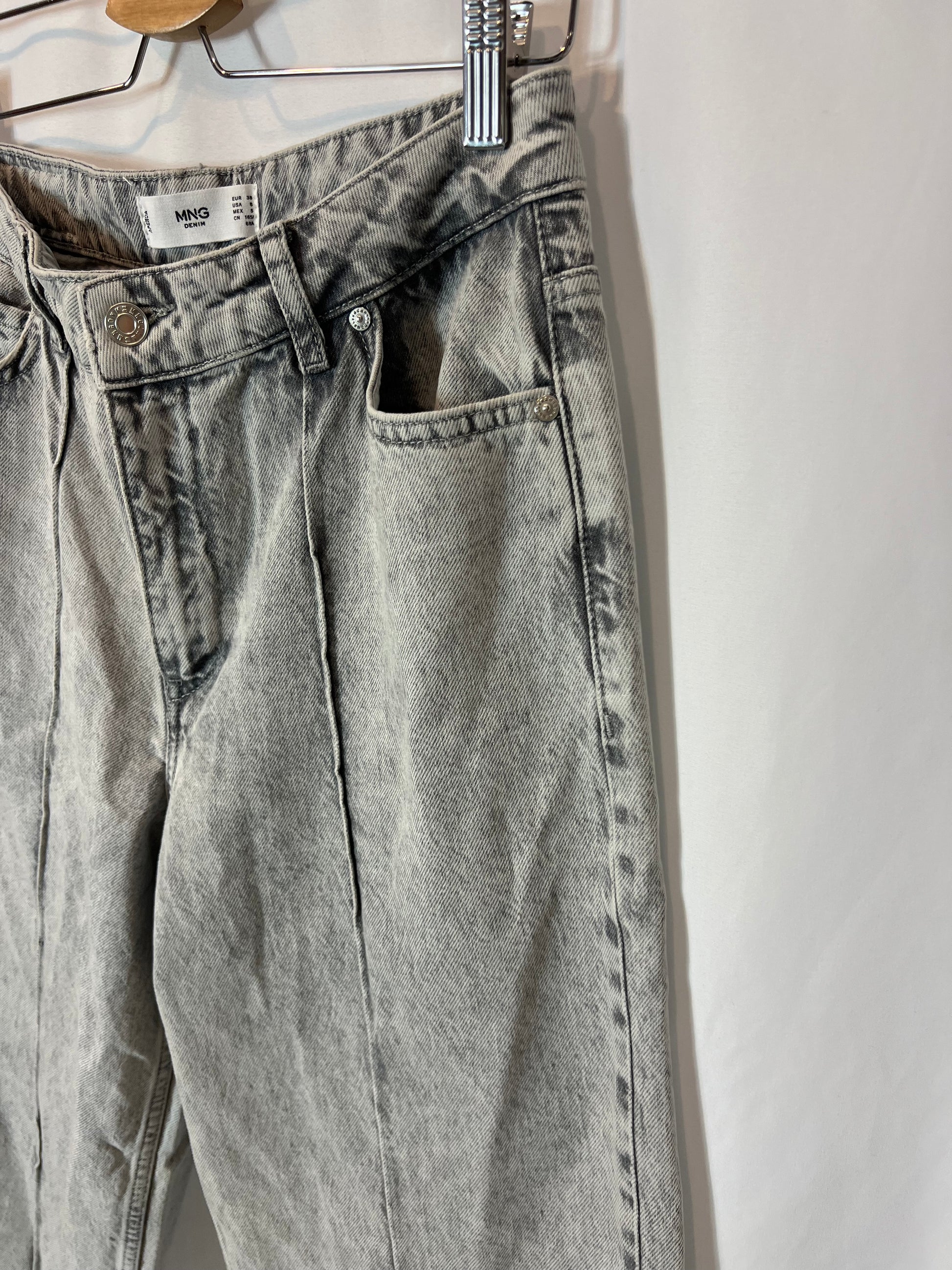Straight gray denim pants with a worn effect. Length 100 cm.