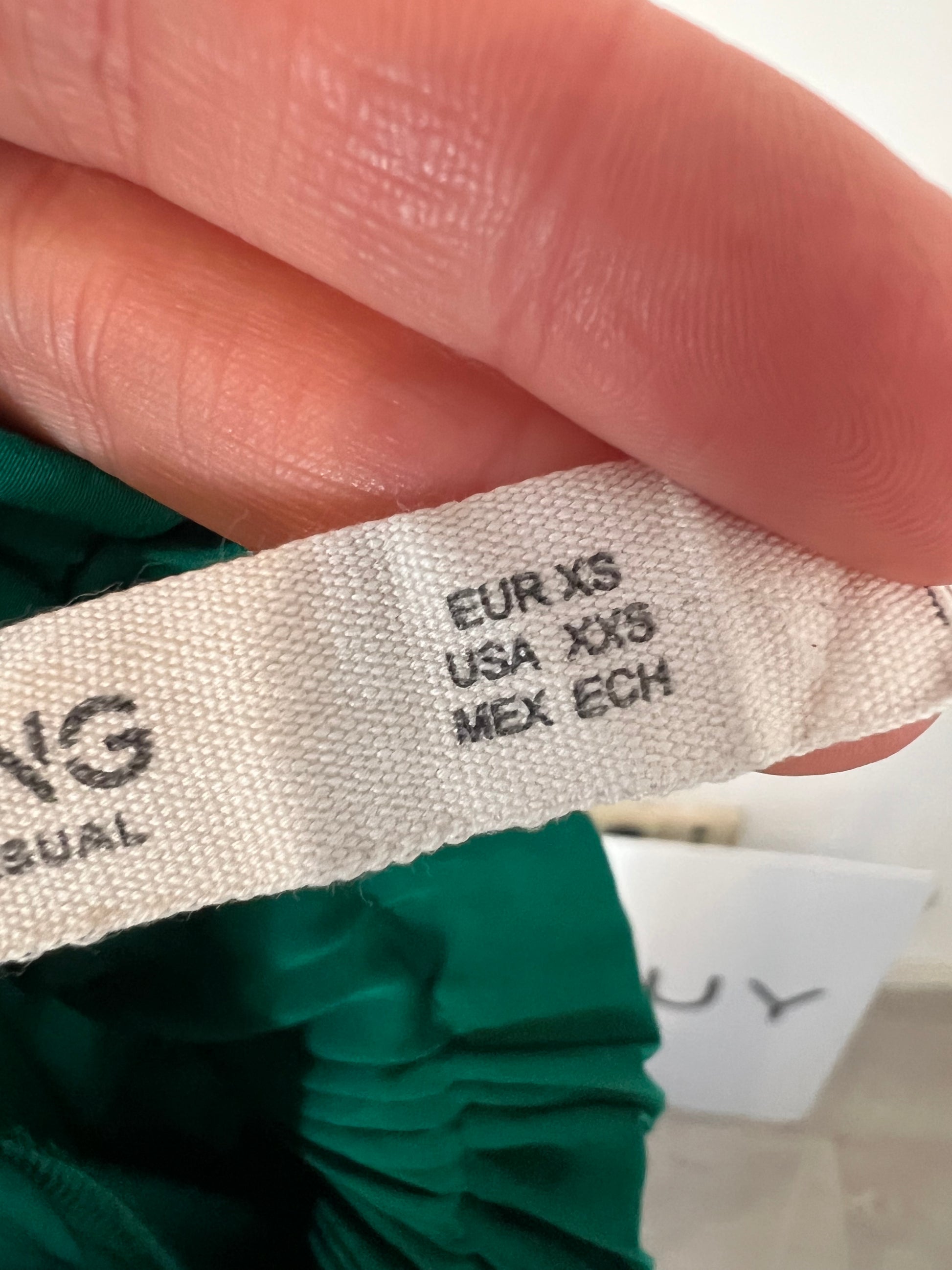 Green flowy pants with elastic waistband. Waist 33 cm, length 109 cm.