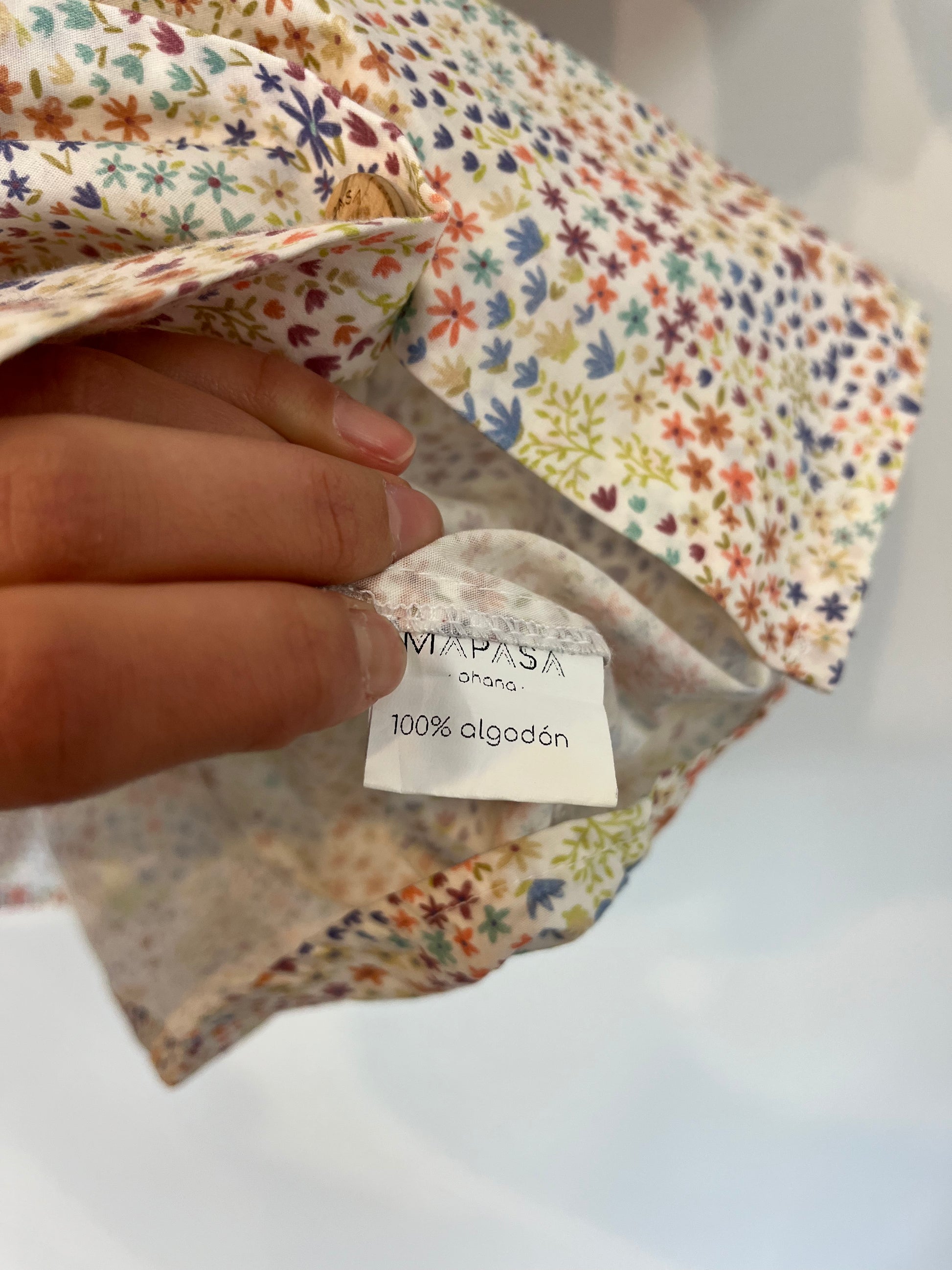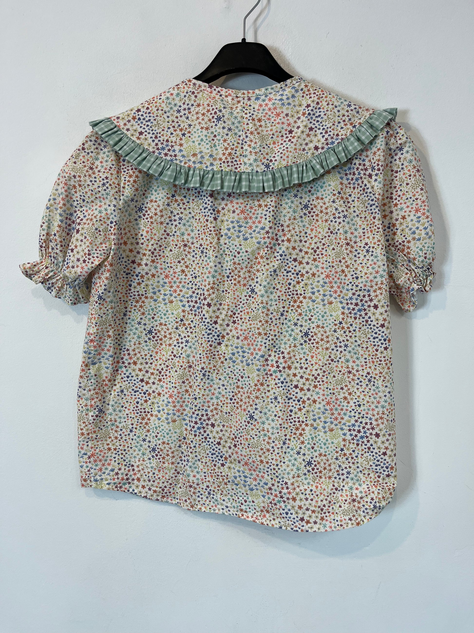 Baby-collar floral blouse. From armpit to armpit 47 cm, length 53 cm.