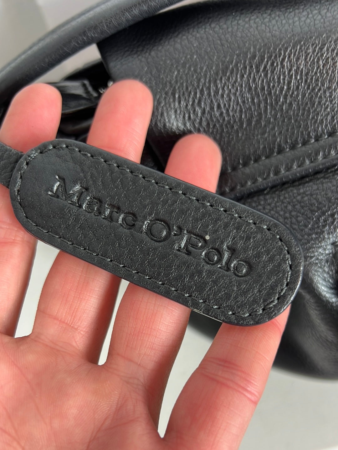 MARC O´POLO. Blue leather bag with short handles