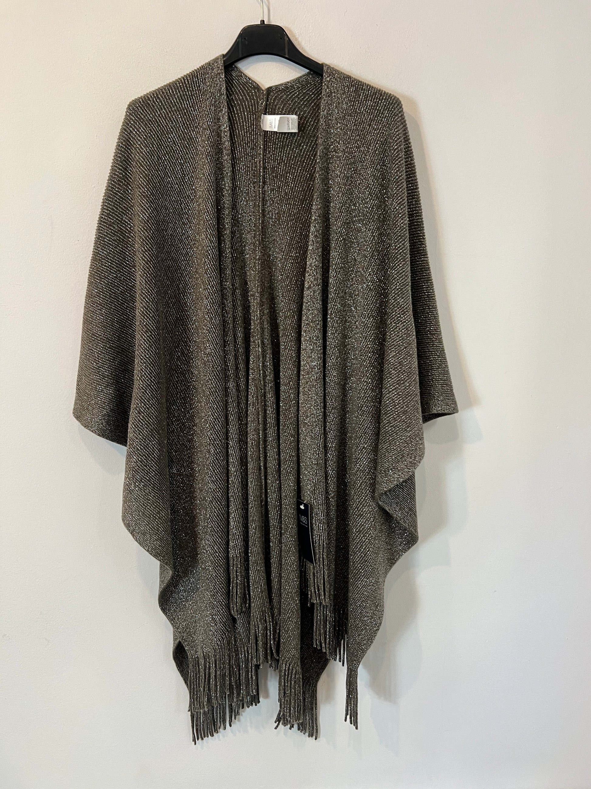 MARKS&SPENCER. Poncho punto gris hilos