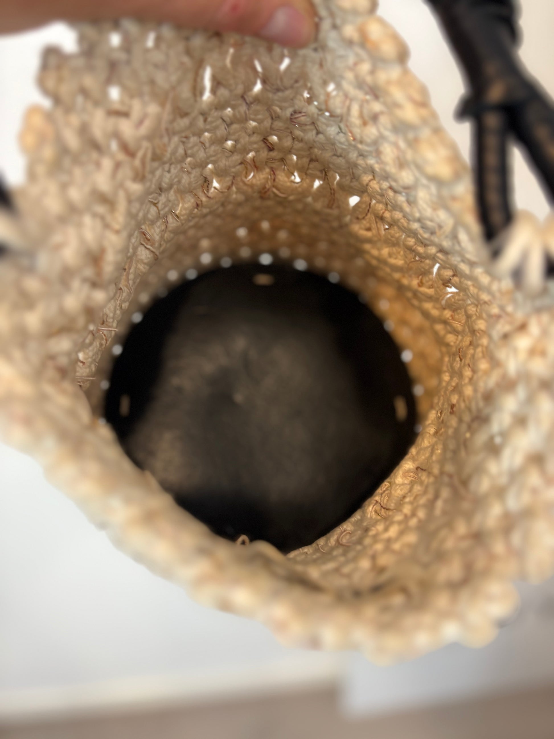 ancho 23 cm, alto 21, base 17 cm/ tara: marcas de uso en la tela (foto)