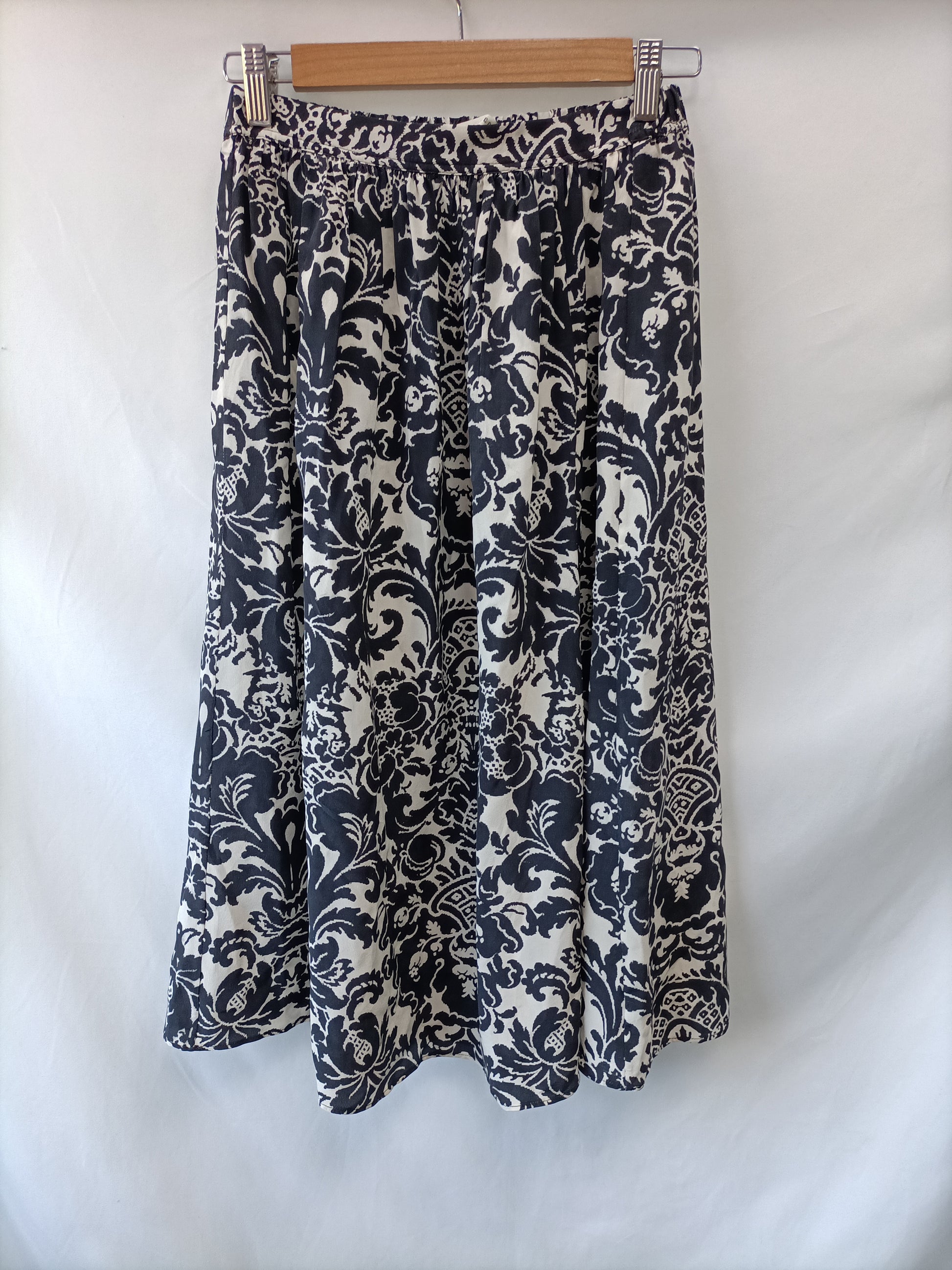 Black floral midi skirt. Flowy with elastic waist. 73 cm long.