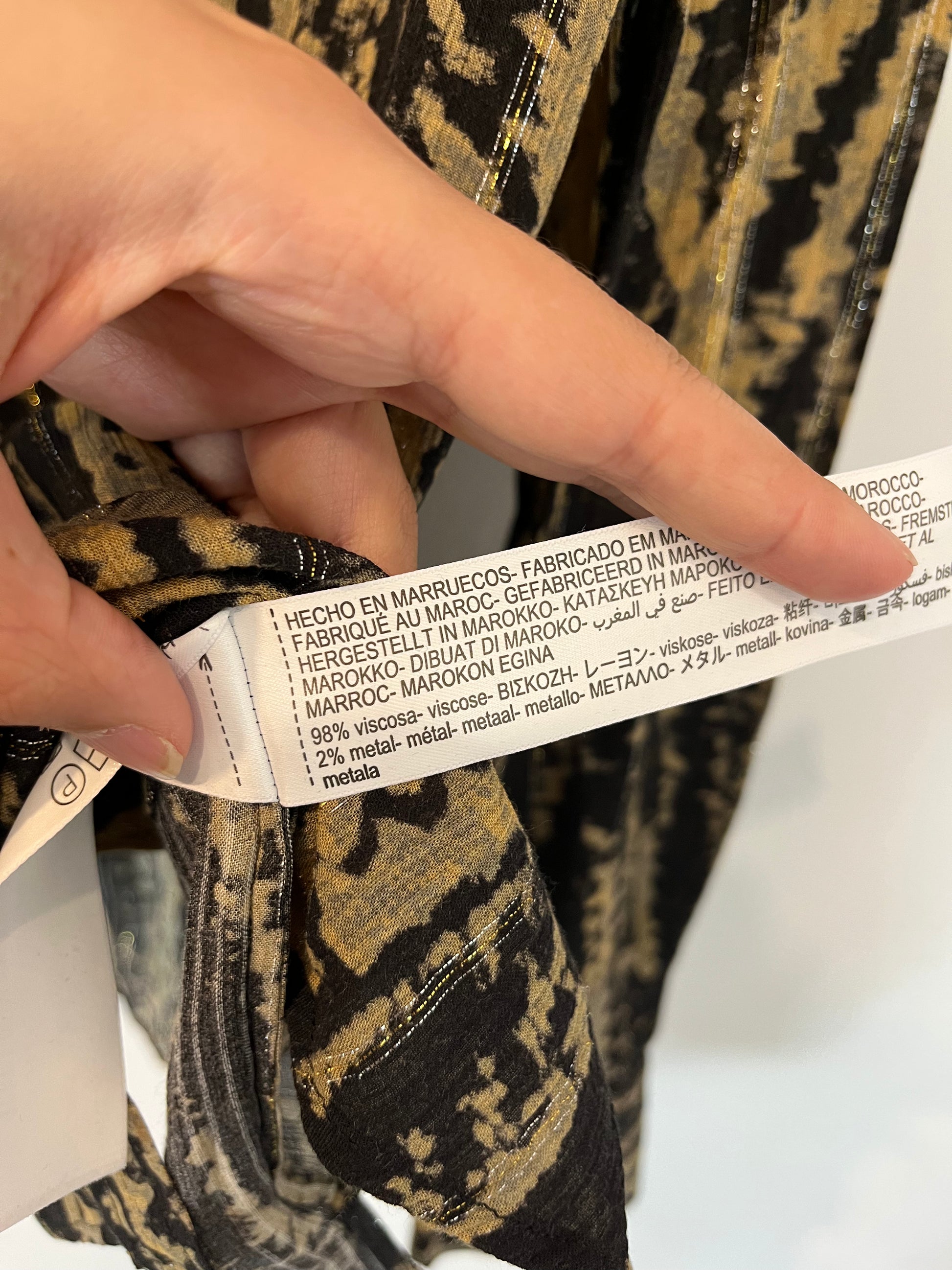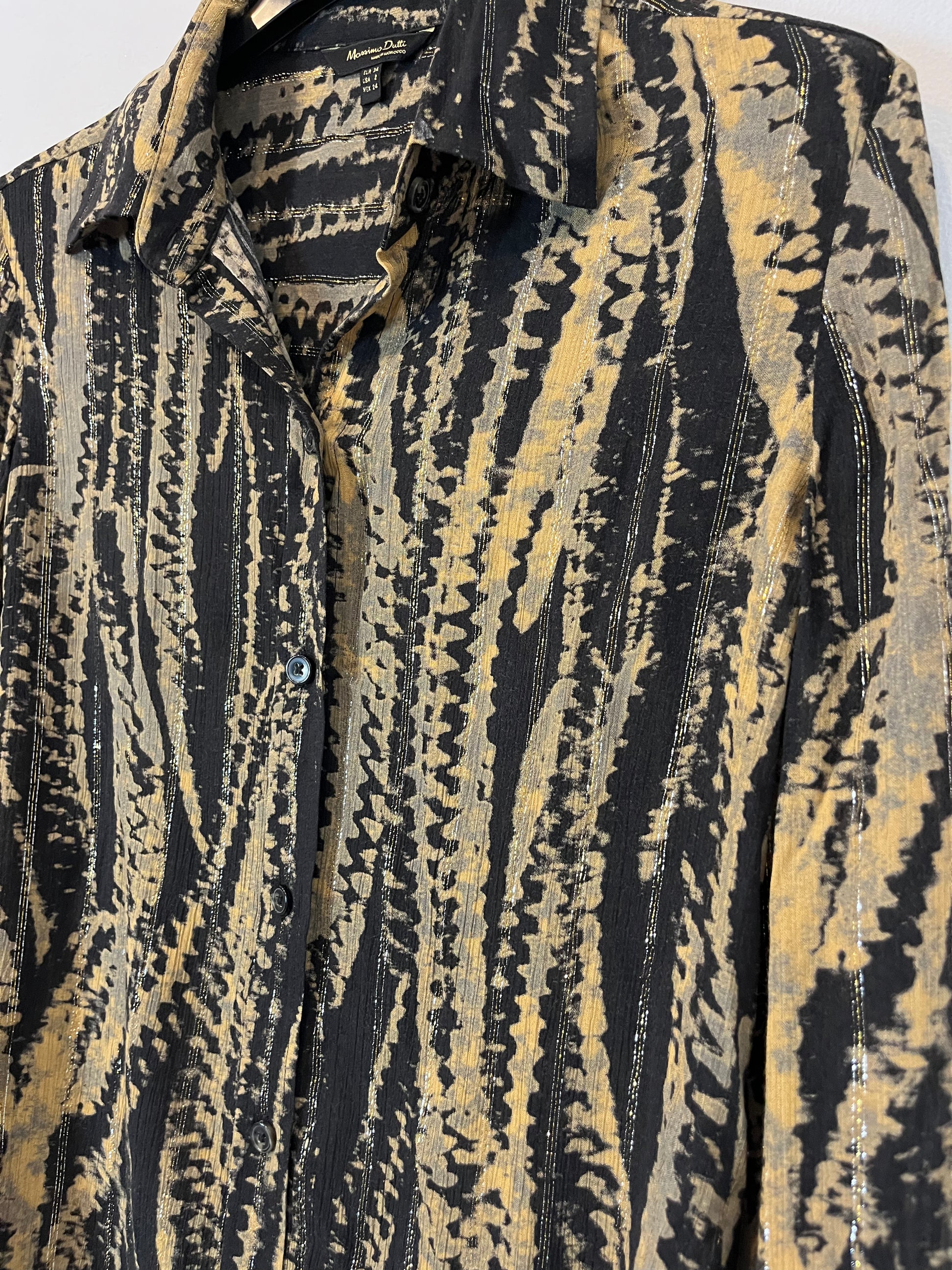 MASSIMO DUTTI. Blusa negra y camel estampada T.34