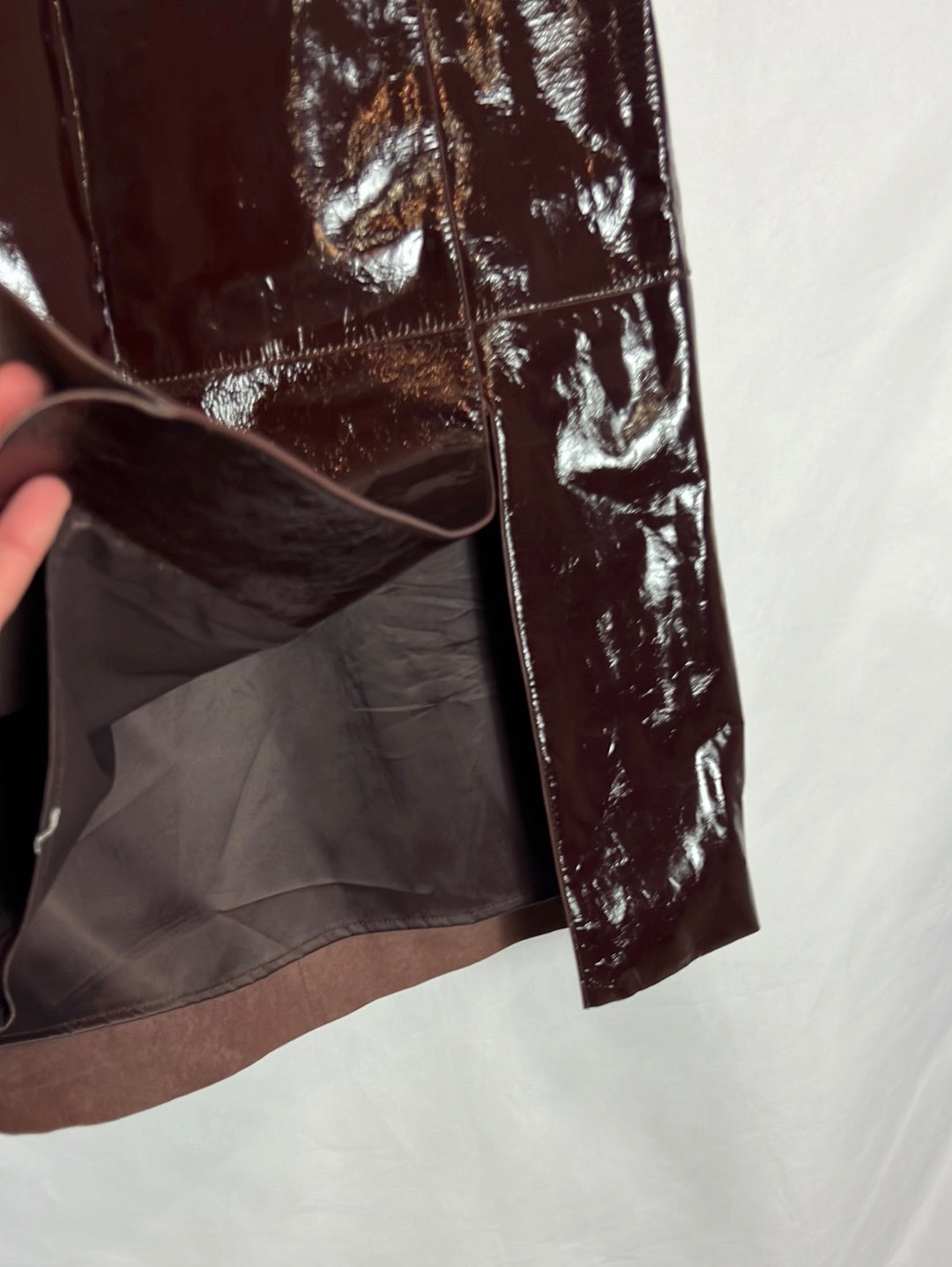 MASSIMO DUTTI. Burgundy brown leather midi skirt. TS