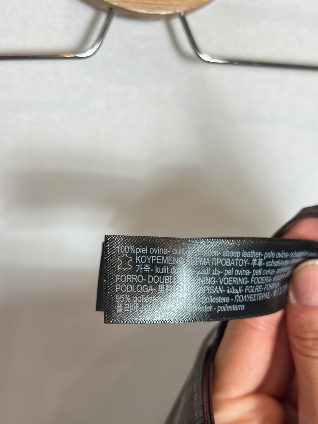 100% burgundy brown leather midi skirt. Waist 34cm, hip 46cm, length 66cm