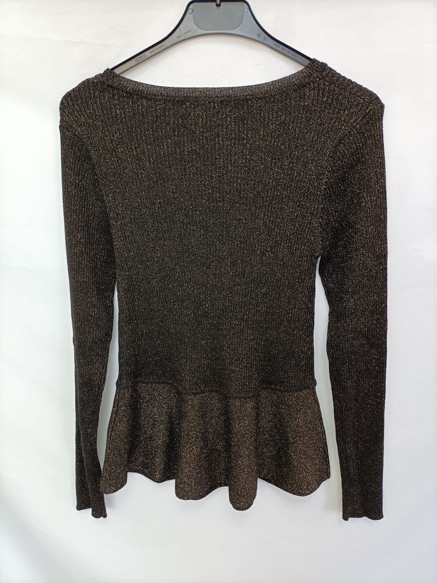 Massimo Dutti.s. Black knit top with copper thread detail. Ruffle at the bottom. Elastic. 60 cm long.