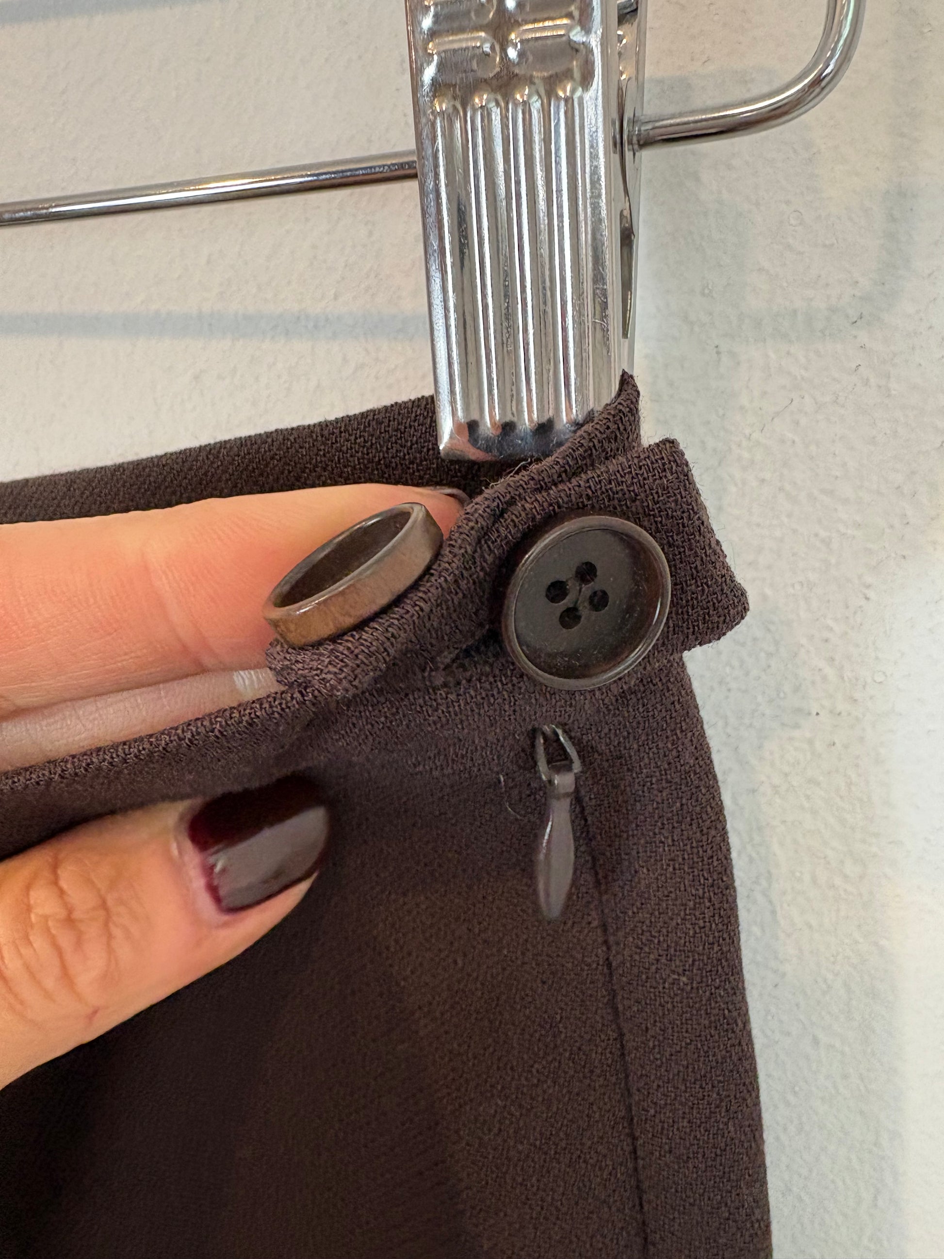 Brown pleated trousers made from 100% wool. Very lightweight. Non-itchy. Waist 38 cm, hip 52 cm, length 102 cm. Non-stretch.