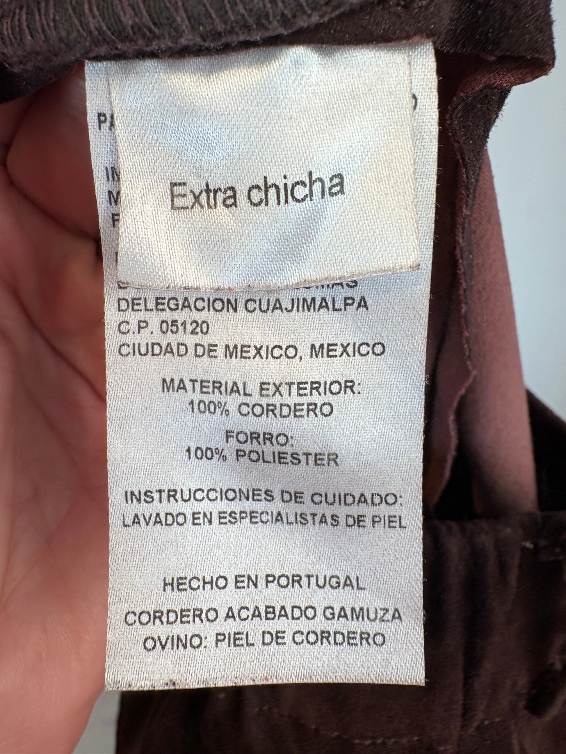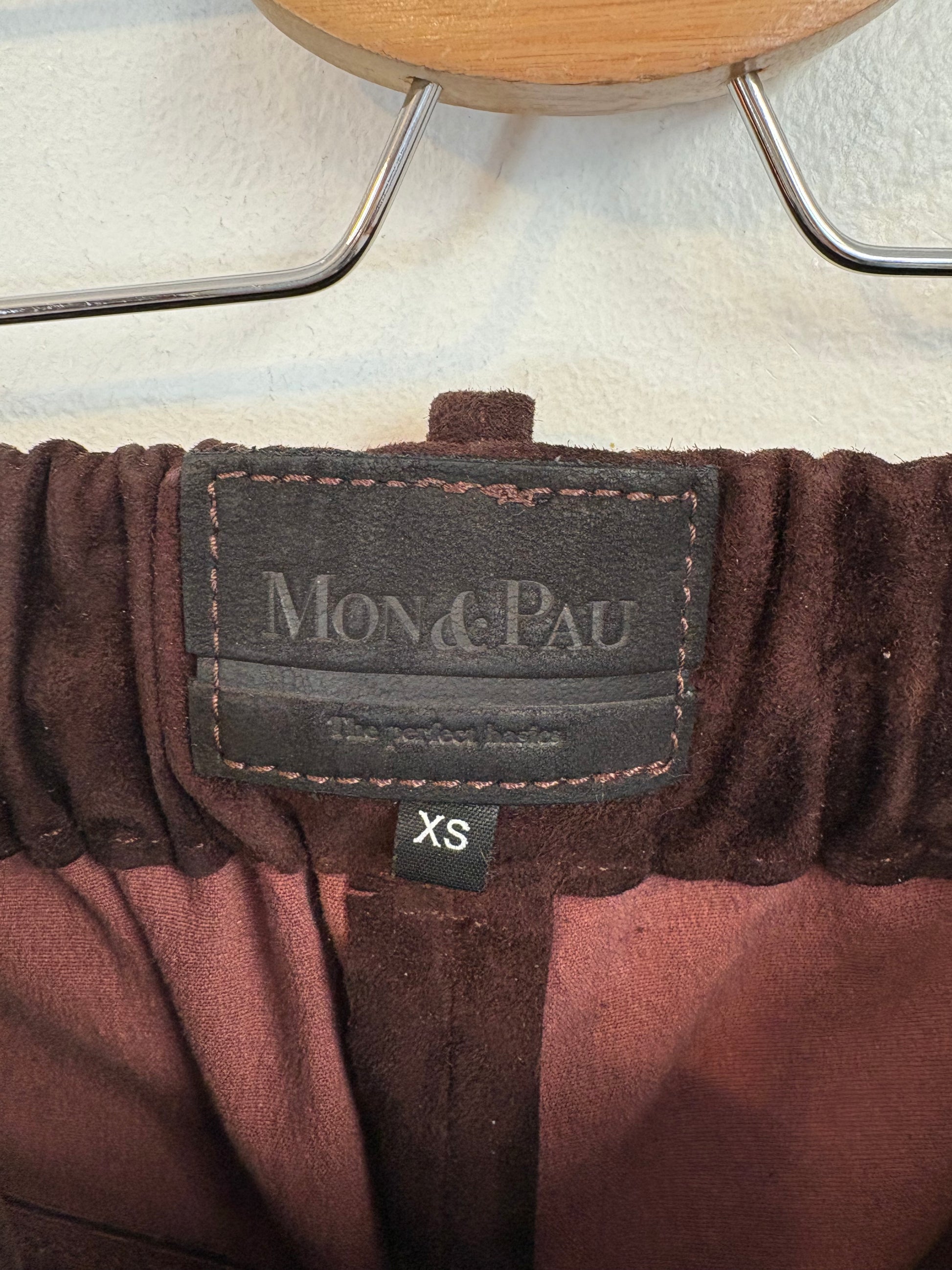 MON & PAU. Pantalón piel vuelta marrón chocolate