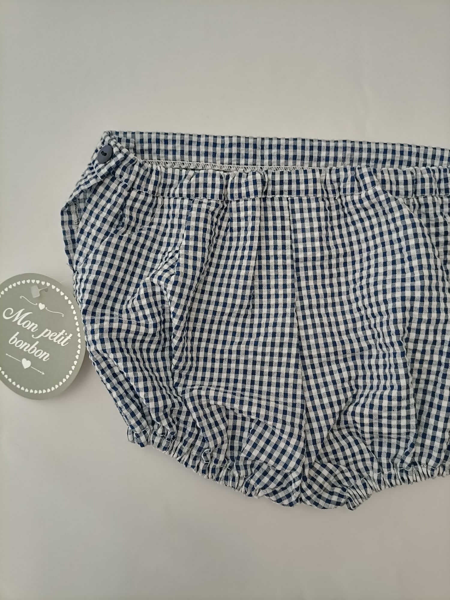 Mon petit bombón. Pantalón corto de cuadros azul y blanco con elástico.