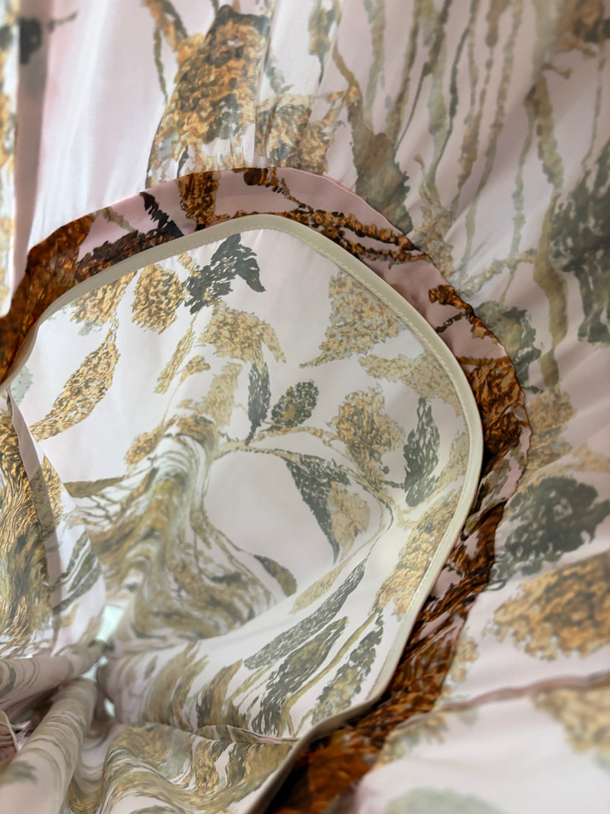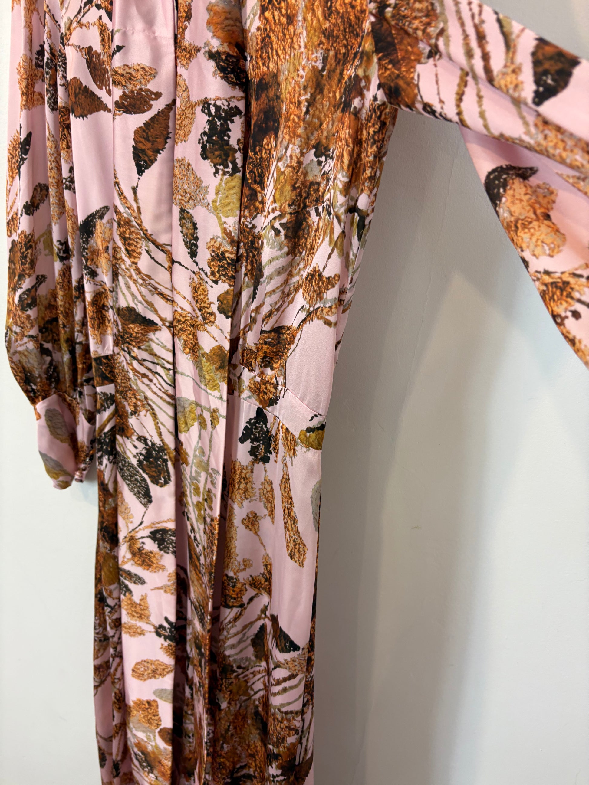Espalda 47 cm, cintura 37 cm , Largo 146 cm / fondo rosa claro