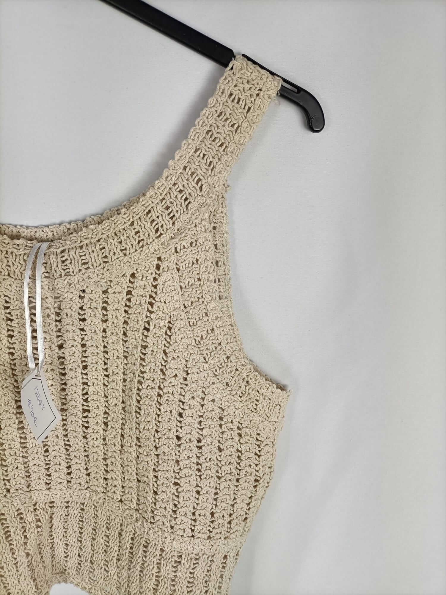 Muse. TU (S/M). NUEVO CON ETIQUETA. Top beige cortito de croché. Elástico. Largo 44 cm. 16,90 euros