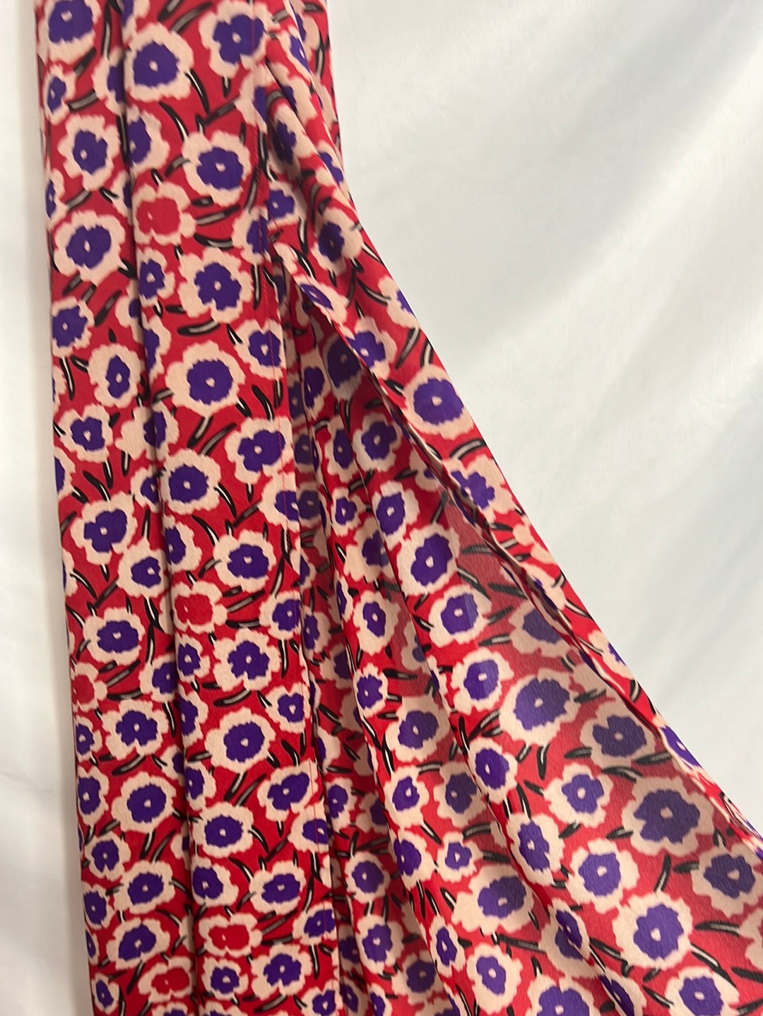 Red midi dress with slit. 129cm long, armhole to armhole, 39cm wide, waist 33cm.