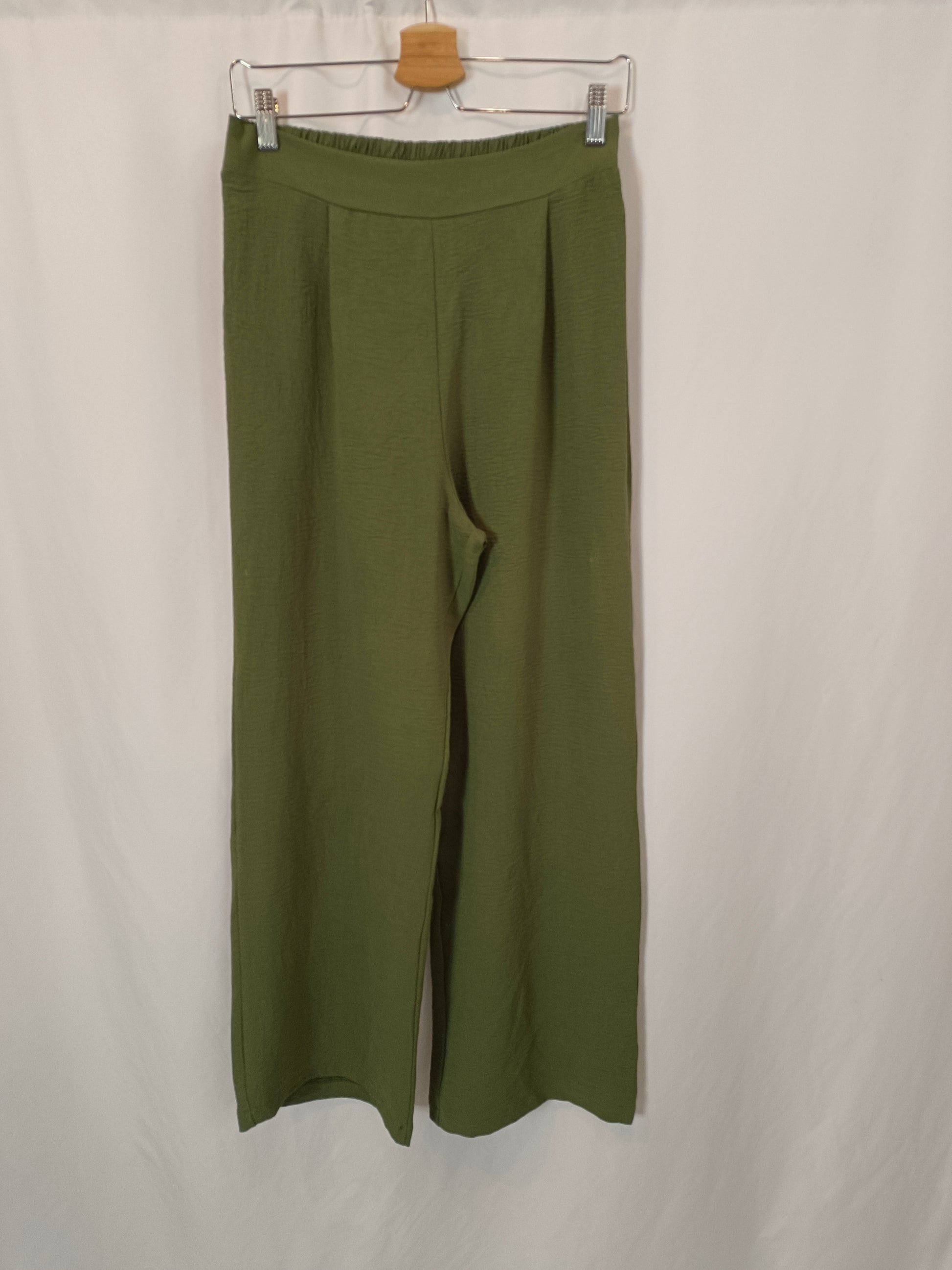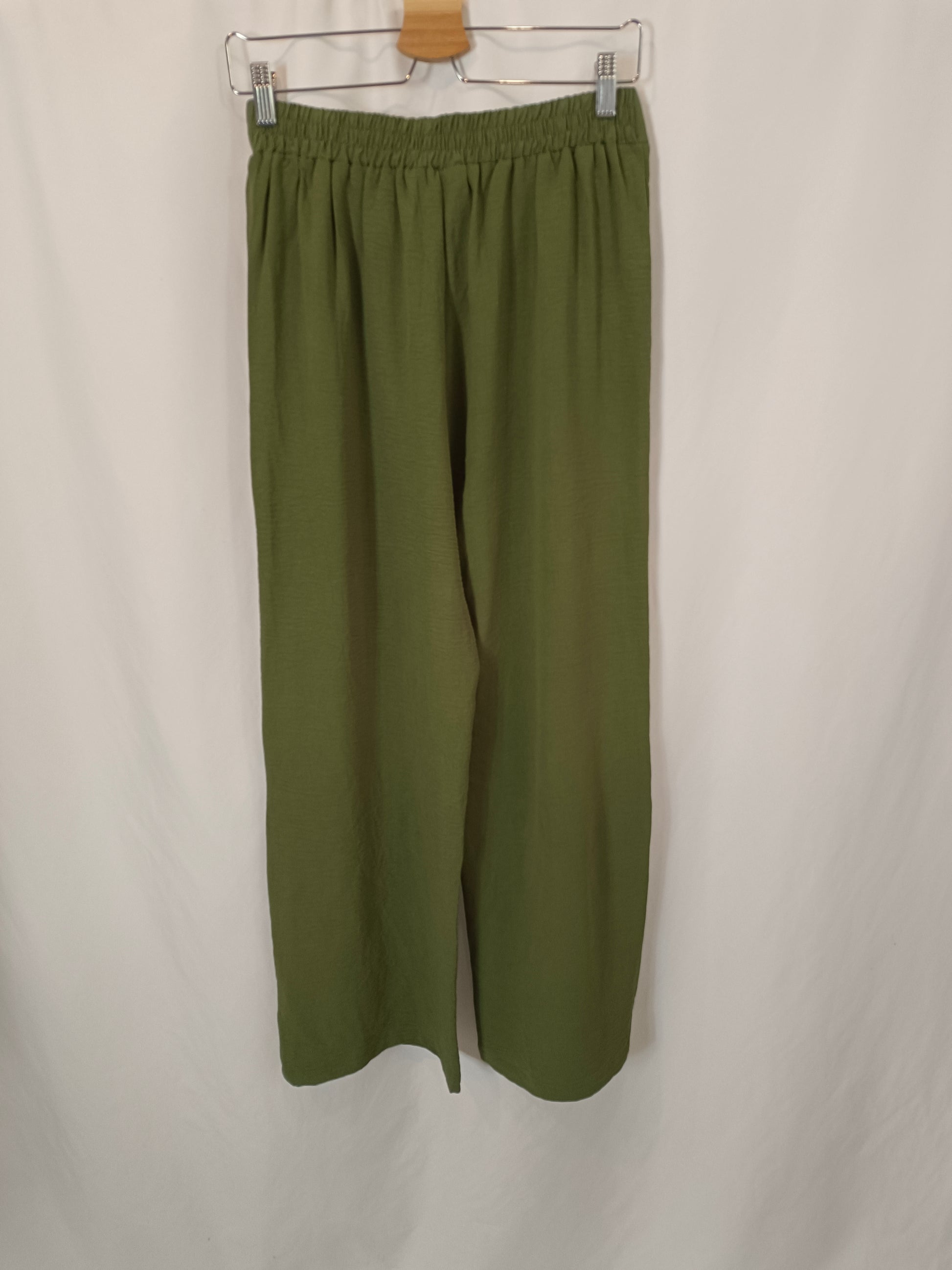NUEVO CON ETIQUETA. Pantalón fluido verde ancho cintura elástica.