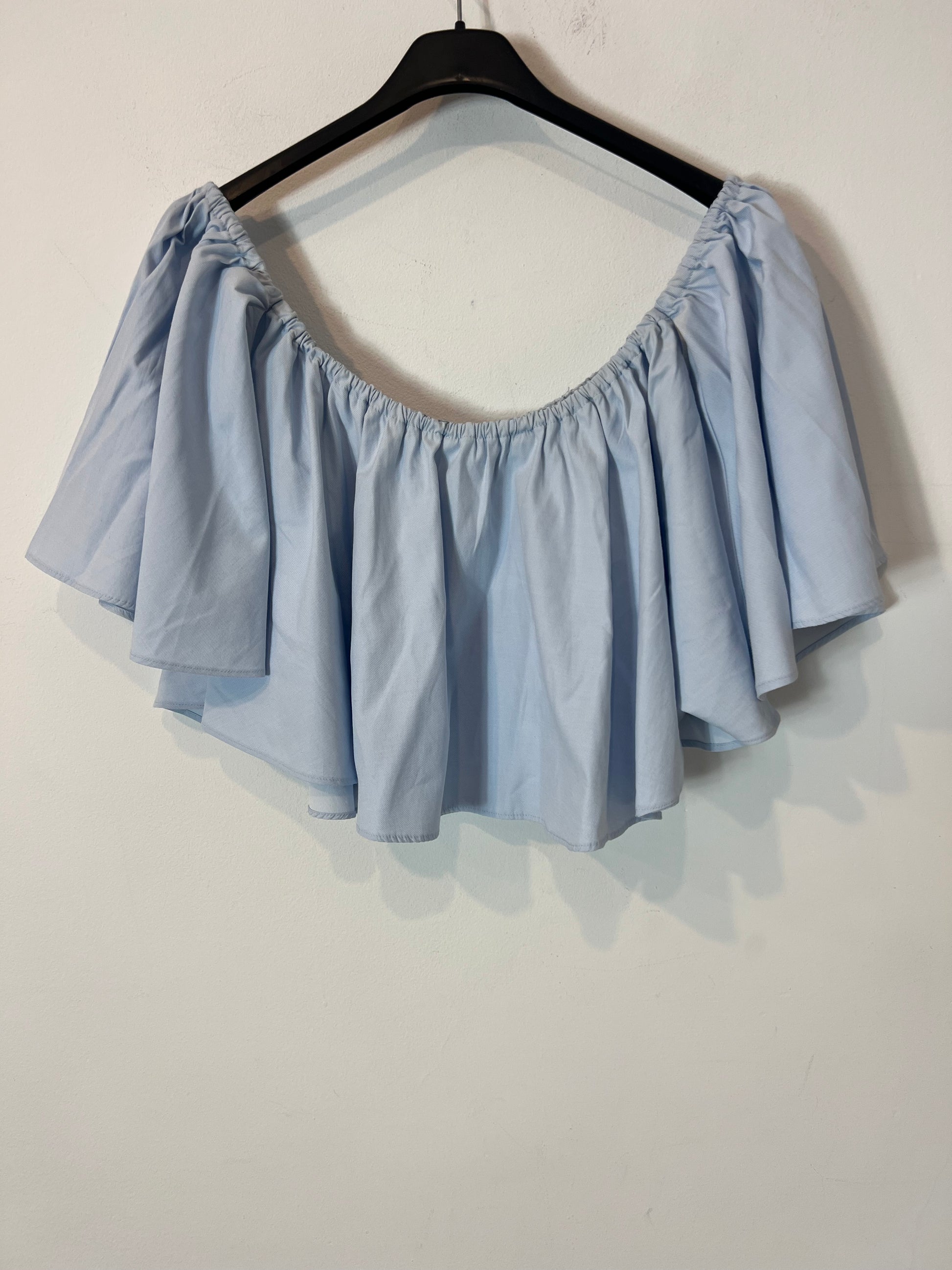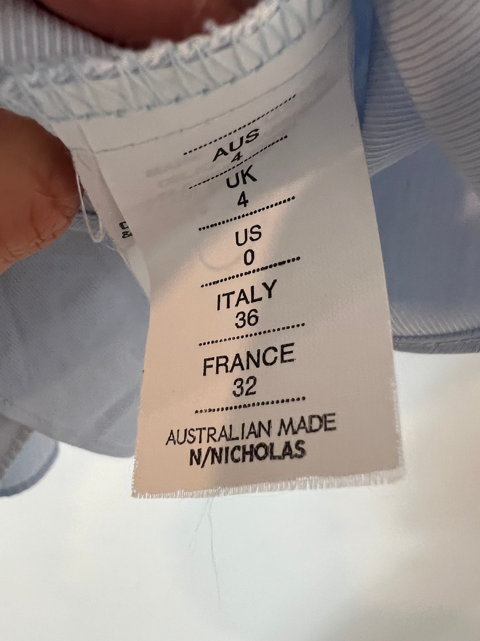 N/NICHOLAS. Blue strapless top with sleeves S.XS